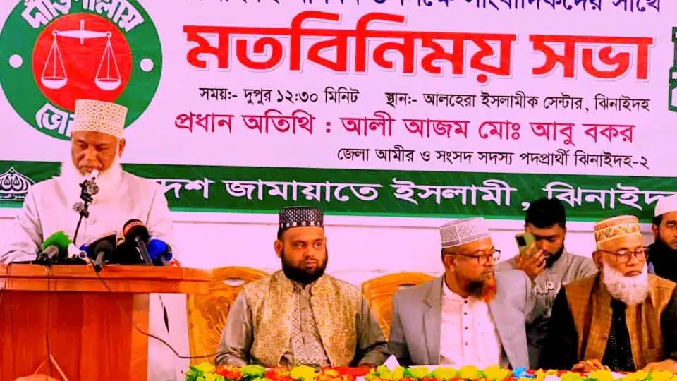 শনিবার দুপুরে শহরের আল-হেরা এলাকার জামায়াতের নিজস্ব কার্যালয়ে এ সংবাদ সম্মেলন অনুষ্ঠিত হয়। এতে উপস্থিত ছিলেন ঝিনাইদহ জেলা জামায়াতের আমীর ও ঝিনাইদহ-২ আসনের সংসদ সদস্য পদপ্রার্থী আলী আযম মোহাম্মদ আবু বক্কর, জেলা নায়েবে আমীর আব্দুল আলীম,জেলা সেক্রেটারি মাওলানা আব্দুল আওয়াল, শহর শাখার আমীর এডভোকেট ইসমাইল হোসেনসহ অন্যান্য নেতৃবৃন্দ।