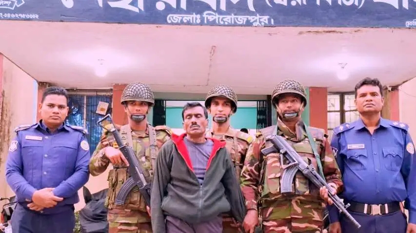 নির্ভরযোগ্য গোয়েন্দা সূত্রের তথ্যে নেছারাবাদ আর্মি ক্যাম্প ও পুলিশের যৌথ অভিযানে দীর্ঘদিনের পলাতক সন্ত্রাসী পরিতোষ মিস্ত্রি (৬৩) গ্রেপ্তার হয়েছে। শনিবার (২৬ জানুয়ারি ২০২৬) বিকাল সাড়ে ৩টার দিকে নেছারাবাদ এলাকায় তার অবস্থান নিশ্চিত করে এ অভিযান পরিচালনা করা হয়।