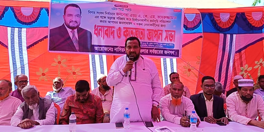 ব্রাহ্মণবাড়িয়া-১ (নাসিরনগর) আসনে সদ্য অনুষ্ঠিত ত্রয়োদশ জাতীয় সংসদ নির্বাচনে স্বতন্ত্র প্রার্থী হিসেবে প্রতিদ্বন্দ্বিতা করা এডভোকেট একেএম কামরুজ্জামান মামুন-এর পক্ষ থেকে নাসিরনগরে প্রথমবারের মতো ব্যতিক্রমধর্মী ‘ধন্যবাদ ও কৃতজ্ঞতা জ্ঞাপন সভা’ অনুষ্ঠিত হয়েছে।