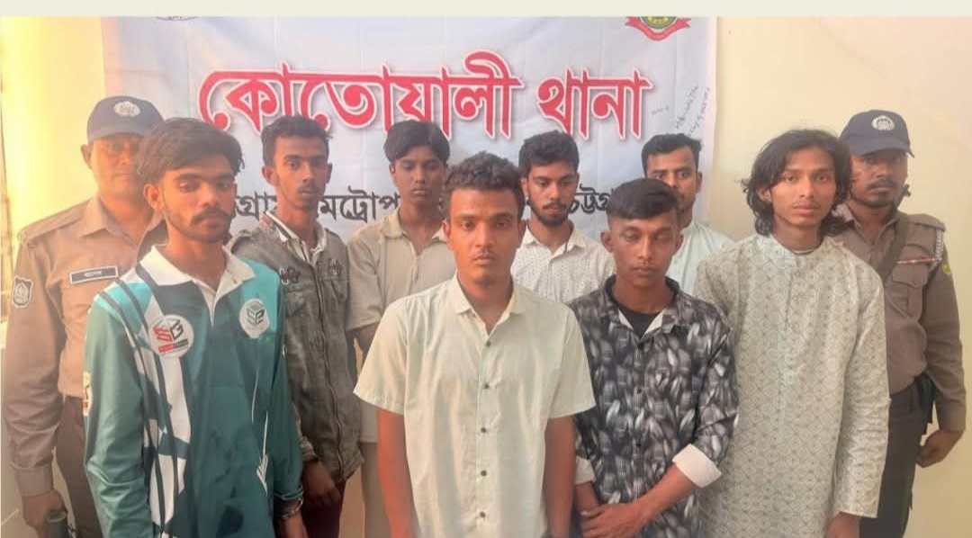 খবর পেয়ে কোতোয়ালী থানা পুলিশ দ্রুত ঘটনাস্থলে পৌঁছে অভিযান চালিয়ে নিষিদ্ধ ঘোষিত সংগঠনের আট সদস্যকে আটক করে। আটককৃতরা সবাই আওয়ামী লীগের অঙ্গ ও সহযোগী সংগঠনের নেতাকর্মী।
