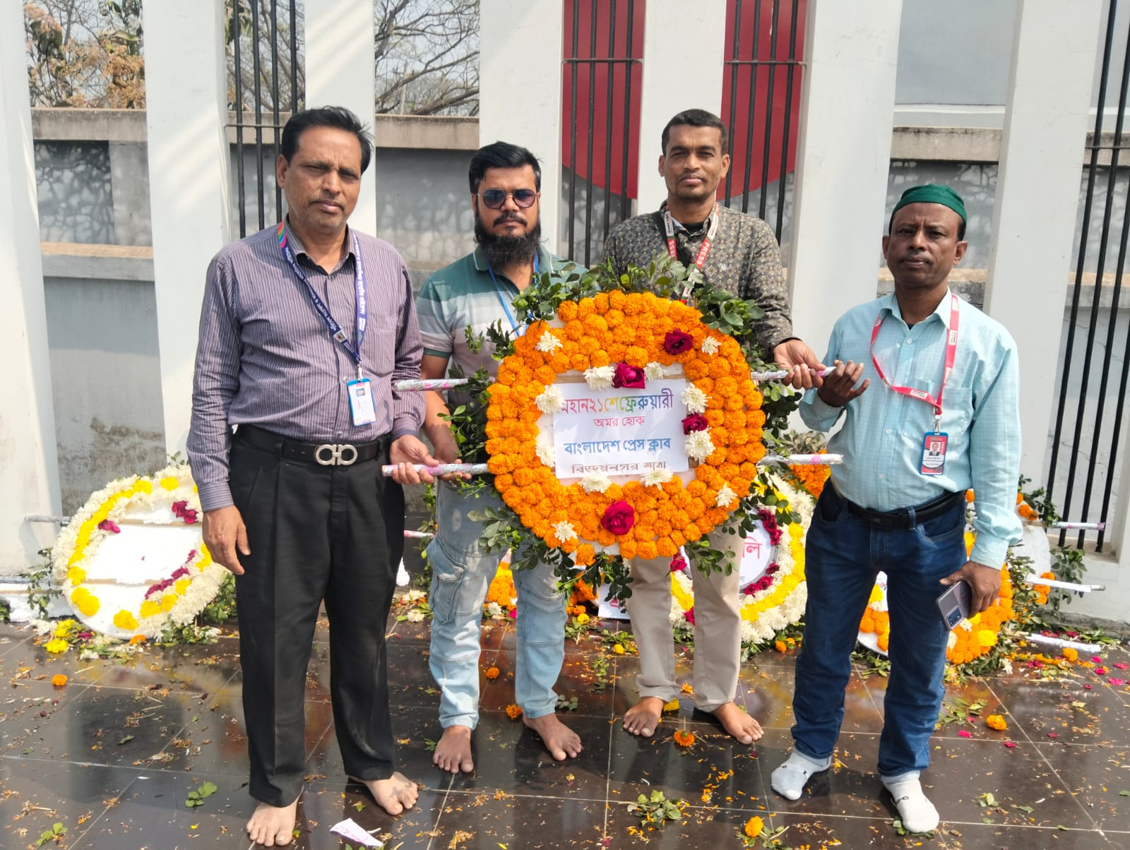 এ সময় উপস্থিত ছিলেন বাংলাদেশ প্রেসক্লাব বিজয়নগর উপজেলা শাখার সভাপতি মোহাম্মদ সেলিম, সিনিয়র সহ-সভাপতি মোঃ সেলিম মিয়া, অর্থ সম্পাদক মোঃ আকরাম শাহ, দপ্তর সম্পাদক মোঃ জুয়েল ভূঁইয়াসহ অন্যান্য সদস্যরা। শ্রদ্ধাঞ্জলি অর্পণ শেষে ভাষা শহীদদের আত্মার মাগফিরাত কামনা করে এক মিনিট নীরবতা পালন করা হয়।