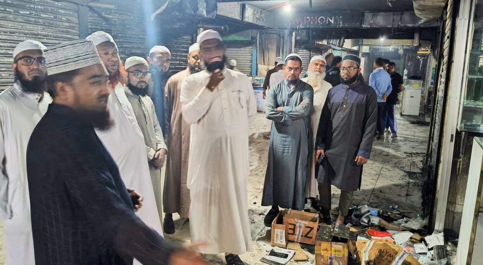 খুলনা নগরীর নিউমার্কেট সংলগ্ন বায়তুন নুর মসজিদ কমপ্লেক্সে অগ্নিকাণ্ডে ক্ষতিগ্রস্ত ব্যবসায়ীদের খোঁজখবর নিতে ঘটনাস্থল পরিদর্শন করেছেন ইসলামী আন্দোলন বাংলাদেশ খুলনা মহানগর নেতৃবৃন্দ।