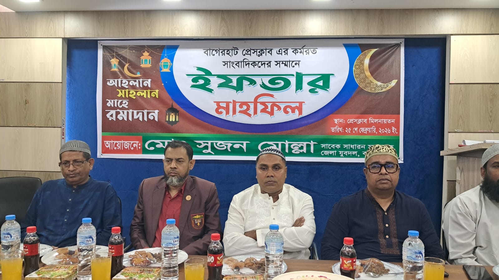 বুধবার (২৫ ফেব্রুয়ারী) বাগেরহাট প্রেসক্লাবের সম্মেলন কক্ষে ইফতার এই ইফতার মাহফিলের আয়োজন করা হয়, এ সময় উপস্থিত ছিলেন প্রেসক্লাবের সভাপতি আবুসাঈদ শুনু, সাধারন সম্পাদক
