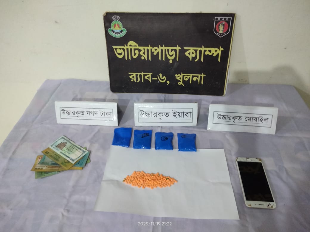 রক্ষিত সর্বমোট ৭৮০ (সাতশত আশি) পিচ ইয়াবা ট্যাবলেট যার ওজন আনুমানিক ৭৮ গ্রাম,এবং আনুমানিক অবৈধ বাজার মূল্য দুই লক্ষ চৌত্রিশ হাজার টাকা। আসামিকে রাতেই কাশিয়ানী থানায় হস্তান্তর করেছে বলে নিশ্চিত করেন খুলনা র্যাব-৬ ভাটিয়াপাড়া ক্যাম্প কমান্ডার এস এম রেজাউল হক।