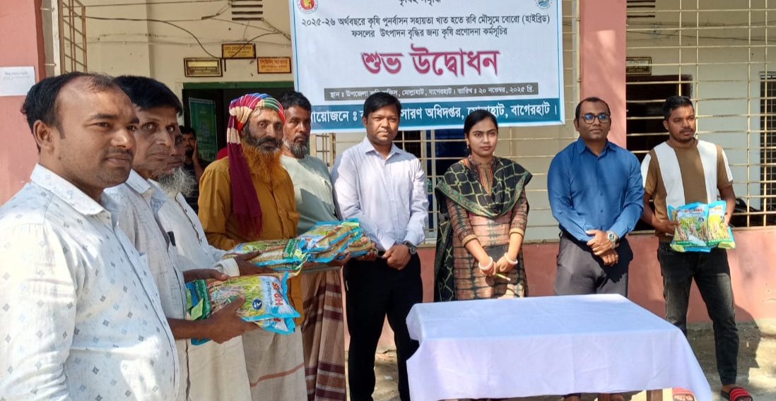 বাগেরহাটের মোল্লাহাট উপজেলায় বিনামূল্যে ১ হাজার ৭০০ কৃষকের মাঝে ধান বীজ বিতরণ করা হয়েছে। বৃহস্পতিবার (২০ নভেম্বর) সকাল ১০টায় উপজেলা কৃষি অফিসের আয়োজনে উপজেলা পরিষদ চত্বরে এ বীজ বিতরণ কার্যক্রম অনুষ্ঠিত হয়।