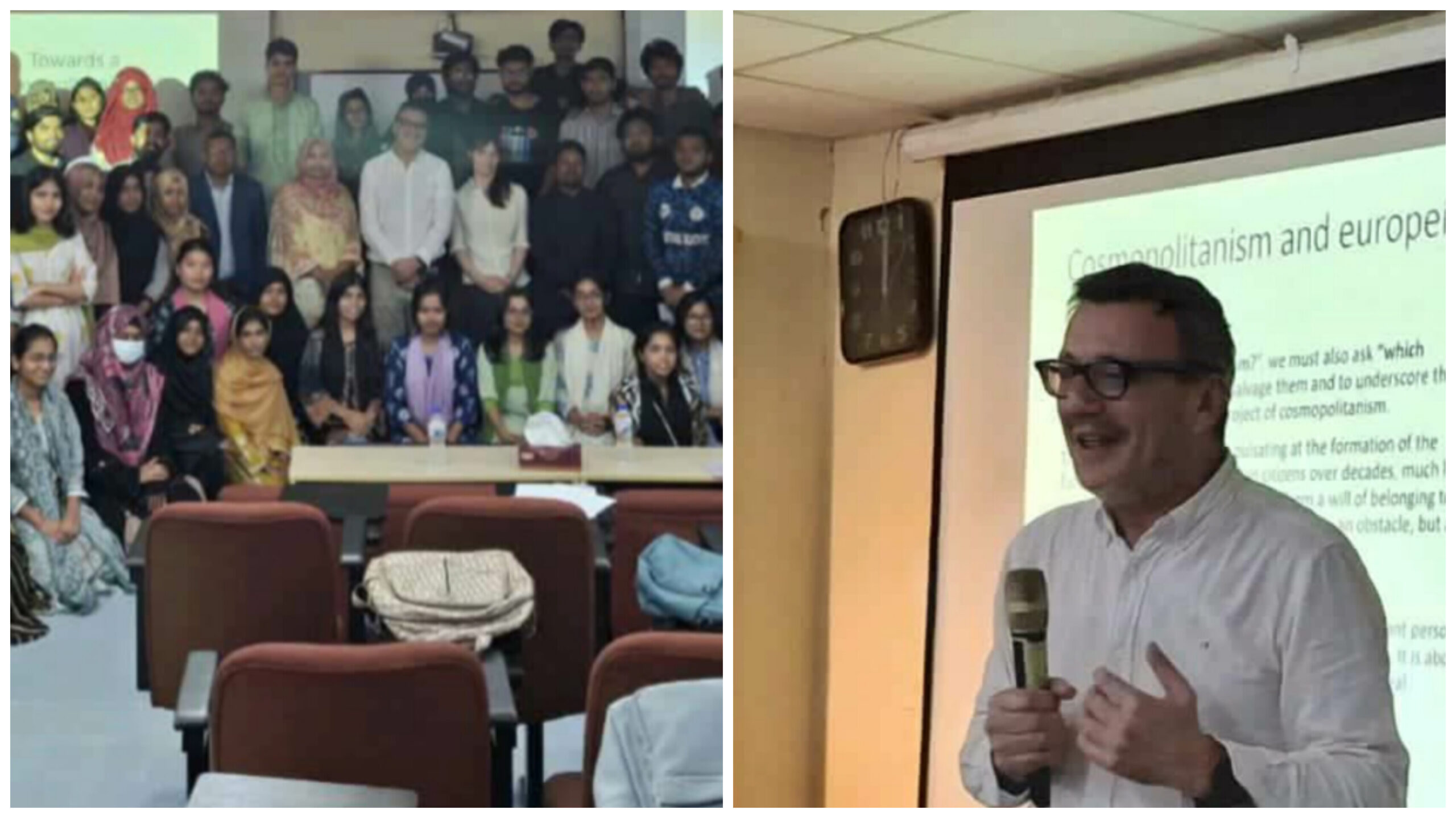 সেমিনারে মূল বক্তা হিসেবে উপস্থিত ছিলেন University of Beira Interior-এর যোগাযোগ বিভাগের অধ্যাপক প্রফেসর আন্দ্রে বারাতা। তিনি সমসাময়িক রাজনীতির বিভিন্ন চ্যালেঞ্জ, বৈশ্বিক প্রেক্ষাপটে পরিচয়ভিত্তিক রাজনীতির প্রভাব এবং ‘নিকটবর্তী কসমোপলিটানিজম’ ধারণার তাত্ত্বিক ও ব্যবহারিক দিক নিয়ে বিস্তারিত আলোচনা করেন।