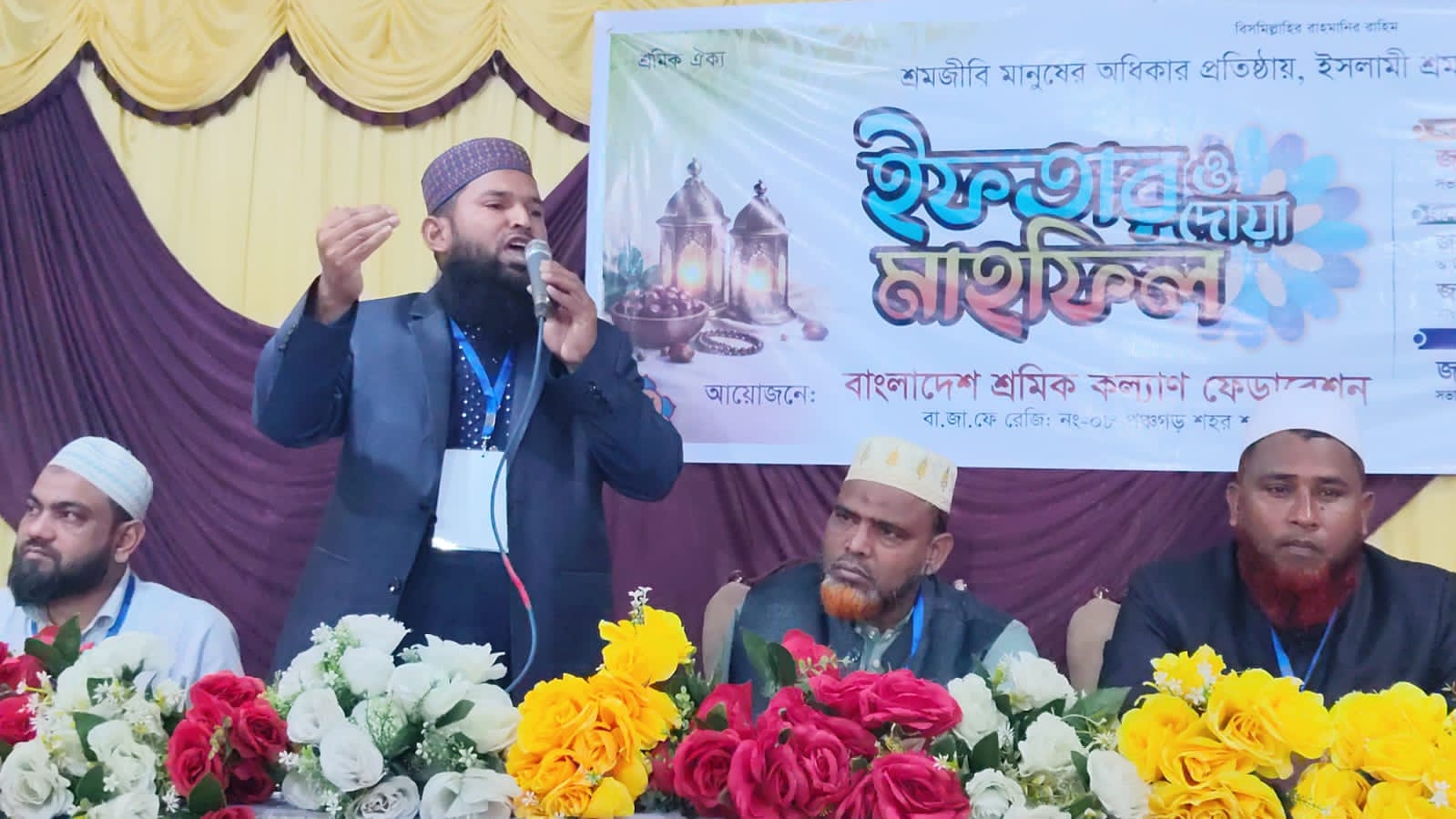 পঞ্চগড় কমিউনিটি সেন্টারে বাংলাদেশ শ্রমিক কল্যাণ ফেডারেশন পঞ্চগড় শহর শাখার উদ্যোগে এক দোয়া ও ইফতার মাহফিল অনুষ্ঠিত হয়েছে। শনিবার (২৮ ফেব্রুয়ারি ২০২৬) আয়োজিত এই অনুষ্ঠানে শ্রমজীবী মানুষের অধিকার, নিরাপত্তা ও কল্যাণ বিষয়ে গুরুত্বপূর্ণ আলোচনা অনুষ্ঠিত হয়।