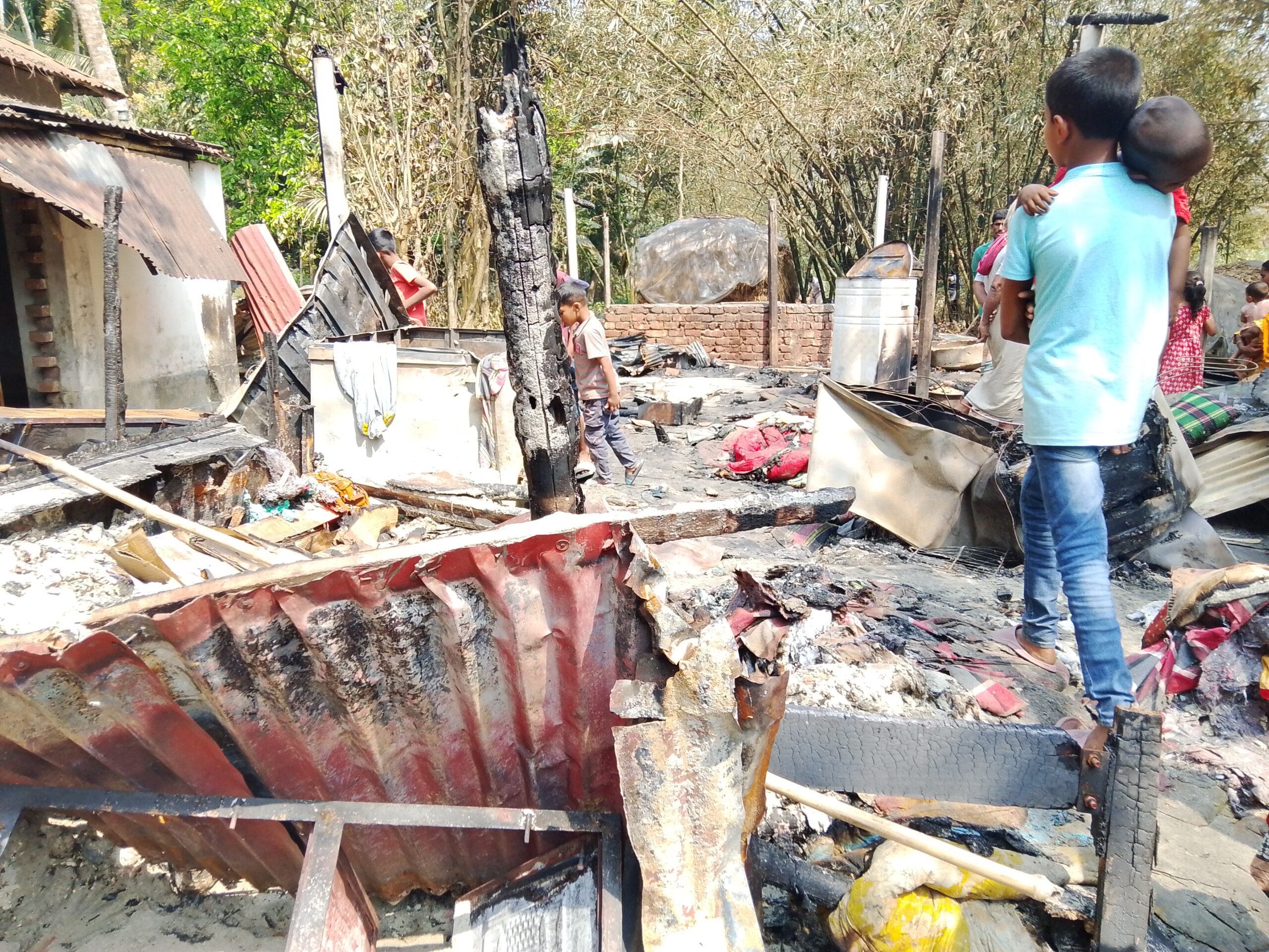 আজ সকালে ঘটনাস্থলে গিয়ে দেখা যায়, পুড়ে যাওয়া টিনের ঘর মাটিতে লুটিয়ে আছে, চারদিকে ছড়িয়ে রয়েছে ছাই আর পোড়া জিনিসপত্র। যে জমিতে ঘরটি ছিল সেটিও অন্যের মালিকানাধীন হওয়ায় পরিবারটি এখন সম্পূর্ণ আশ্রয়হীন। এক রাতের আগুনে সর্বস্ব হারিয়ে তারা মানবেতর জীবনযাপনের শঙ্কায় দিন কাটাচ্ছে।