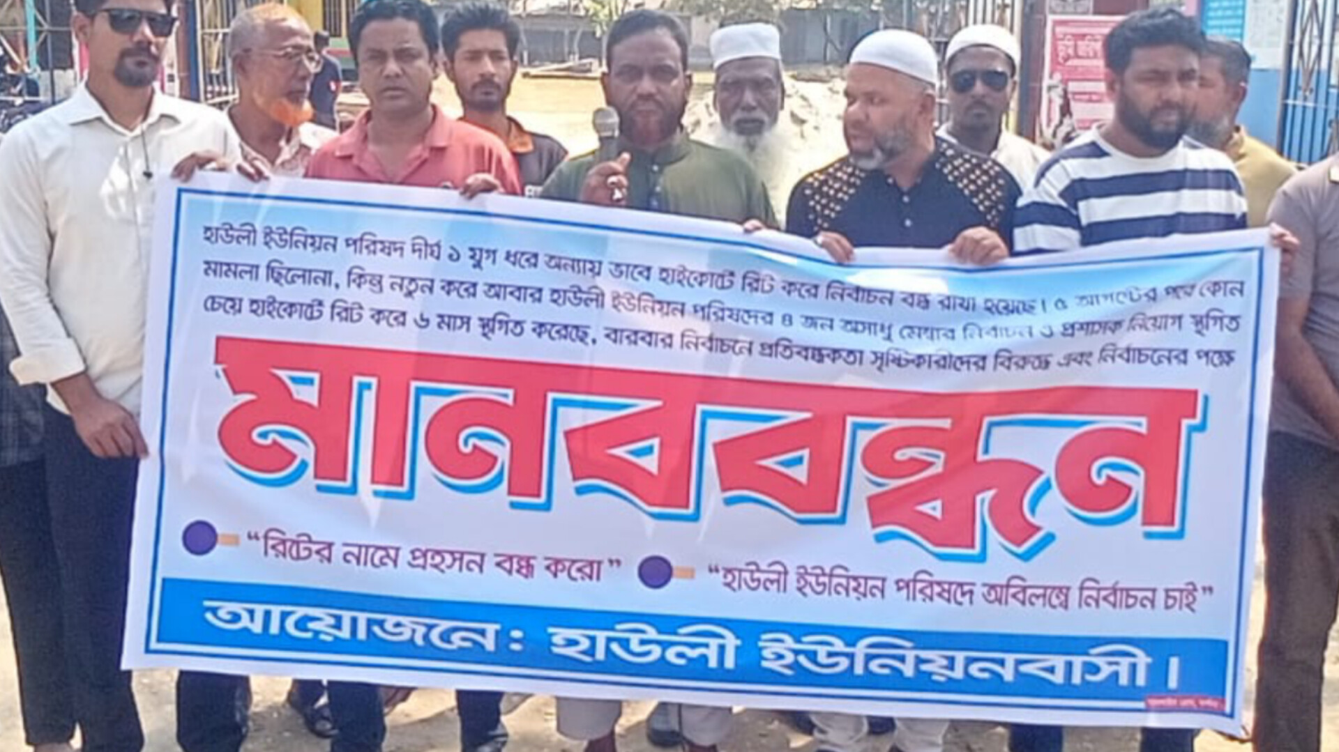 এলাকাবাসী অভিযোগ করেন, প্রায় এক যুগ ধরে হাইকোর্টে রিটের মাধ্যমে হাউলী ইউনিয়ন পরিষদের নির্বাচন স্থগিত রাখা হয়েছে। এর ফলে সাধারণ মানুষ কাঙ্ক্ষিত নাগরিক সেবা থেকে বঞ্চিত হচ্ছেন। বক্তারা বলেন, ৫ আগস্টের পর পরিষদ সংক্রান্ত কোনো মামলা না থাকলেও প্রশাসক নিয়োগের চূড়ান্ত চিঠি আসার পর আবারও নির্বাচন ও প্রশাসক নিয়োগ স্থগিত চেয়ে রিট করা হয়েছে।