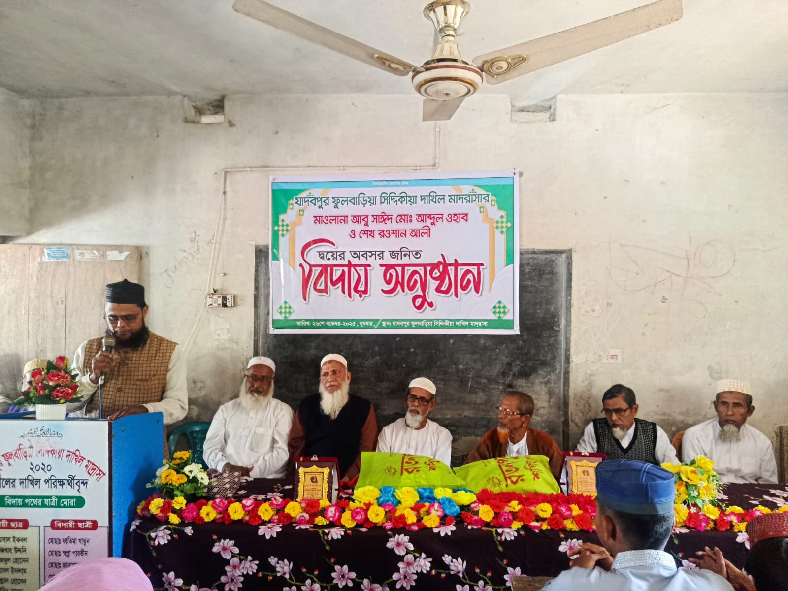 যাদবপুর উত্তর ফুলবাড়িয়া সিদ্দিকিয়া দাখিল মাদ্রাসায় এক আবেগঘন বিদায় সংবর্ধনা অনুষ্ঠিত হয়েছে। দীর্ঘ কর্মময় জীবন শেষে অবসরগ্রহণ করায় সম্মানিত শিক্ষক মাওলানা আব্দুল্লাহ আবু সাঈদ মোহাম্মদ আব্দুল ওয়াহাব এবং অফিস সহকারী শেখ রওশন আলীকে আন্তরিক ভালোবাসা ও সম্মানের সঙ্গে বিদায় জানানো হয়। বুধবার (২৬ নভেম্বর) সকাল ১১টায় মাদ্রাসা প্রাঙ্গণে আনুষ্ঠানিকভাবে এ অনুষ্ঠান শুরু হয়। সভাপতিত্ব করেন প্রতিষ্ঠানের সুপারিনটেনডেন্ট মাওলানা আবুল বাশার।