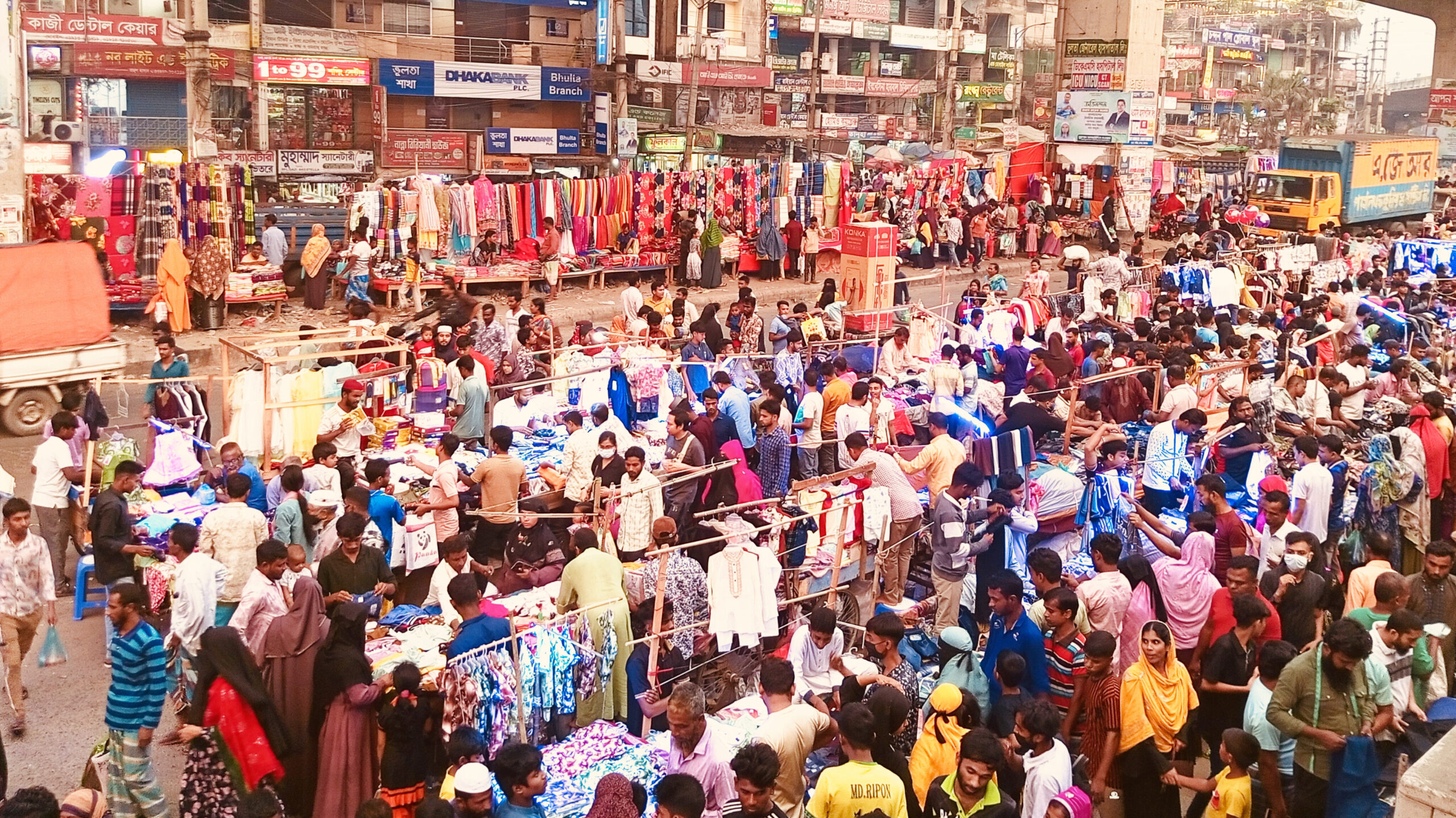 নারায়ণগঞ্জে গাউছিয়া মার্কেটে রাস্তা ও ফুটপাত দখল, ঈদে বাড়ছে ভোগান্তি