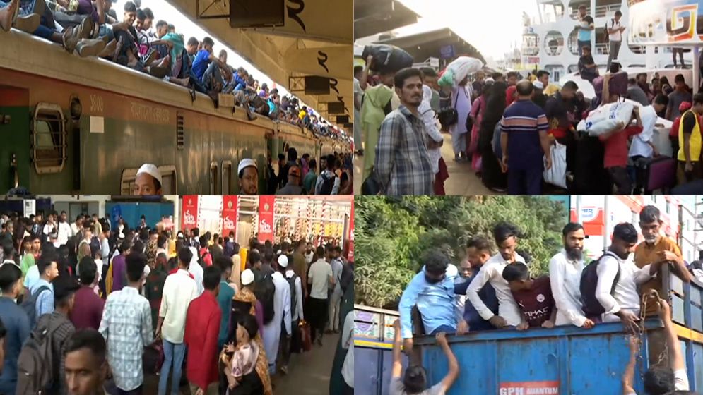 ঈদের ছুটিতে রাজধানী ছাড়ছেন ঘরমুখো মানুষ। বৃহস্পতিবার (১৯ মার্চ) ভোর থেকে পরিবার-প্রিয়জনের সঙ্গে ঈদ উদযাপনে রেল, সড়ক ও নৌ-পথে ঢাকা ছেড়ে নিজ গন্তব্যে ফিরছেন মানুষ।