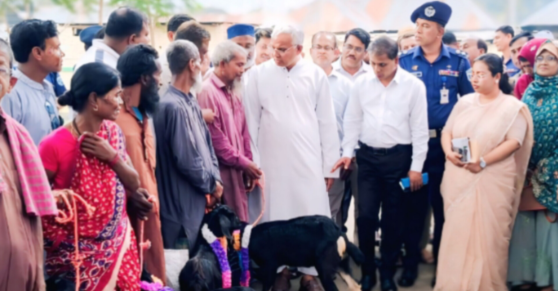 অনুষ্ঠানে জেলা প্রশাসক মো. রফিকুল ইসলাম, পুলিশ সুপার জেদান-আল-মুসা, উপজেলা নির্বাহী কর্মকর্তা তাহমিনা সুলতানা নীলা, সমাজসেবা কর্মকর্তা আব্দুল আওয়ালসহ বিভিন্ন দপ্তরের কর্মকর্তা, রাজনৈতিক নেতৃবৃন্দ ও স্থানীয় গণ্যমান্য ব্যক্তিরা উপস্থিত ছিলেন।