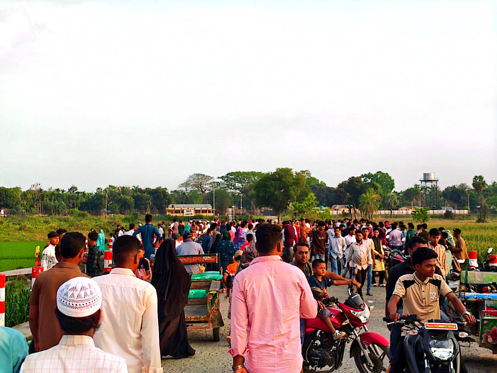 সকাল থেকেই রৌমারী-তুরা স্থলবন্দর সড়কজুড়ে ছিল উৎসবমুখর পরিবেশ। উপজেলা ছাড়াও পার্শ্ববর্তী বিভিন্ন এলাকা থেকে আগত মানুষের পদচারণায় মুখর হয়ে ওঠে সীমান্তঘেঁষা এই সড়ক। কেউ মোটরসাইকেলে, কেউ ইজিবাইকে, আবার কেউ পরিবারসহ পায়ে হেঁটে প্রকৃতির সৌন্দর্য উপভোগ করেন।