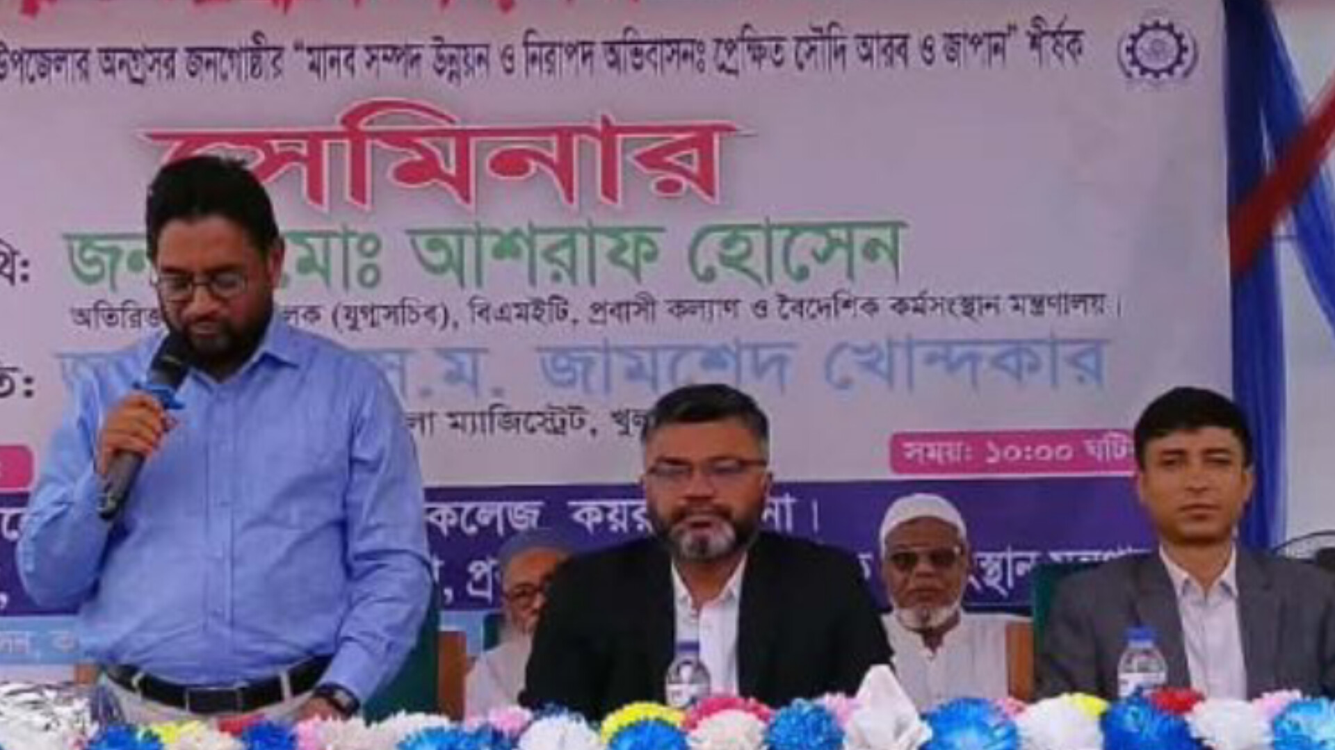 ‘মানব সম্পদ উন্নয়ন ও নিরাপদ অভিবাসন: প্রেক্ষিত সৌদি আরব ও জাপান’ শীর্ষক সেমিনারে প্রধান অতিথি হিসেবে উপস্থিত ছিলেন বিএমইটি-এর অতিরিক্ত মহাপরিচালক (যুগ্ম সচিব) মো. আশরাফ হোসেন। খুলনা জেলা প্রশাসক আ. স. ম. জামশেদ খোন্দকারের সভাপতিত্বে অনুষ্ঠিত সভায় বক্তারা নিরাপদ ও বৈধ পথে বিদেশ গমনের বিভিন্ন দিক তুলে ধরেন।