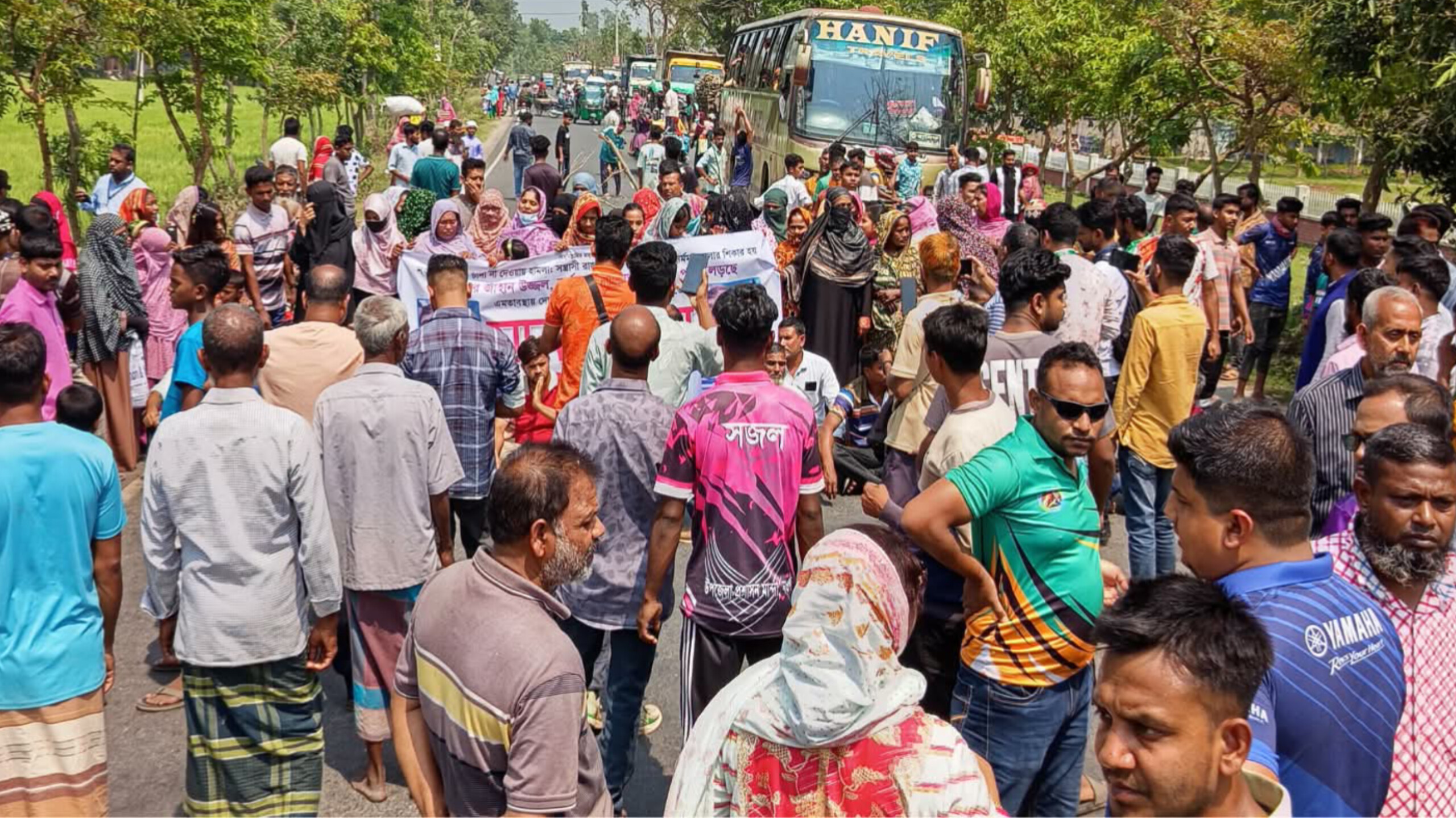 এ ঘটনার প্রতিবাদে বেলা ১১টার দিকে কালীগ্রাম কাচারি মাঠে মানববন্ধন অনুষ্ঠিত হয়। পরে একটি বিক্ষোভ মিছিল বিভিন্ন এলাকা প্রদক্ষিণ করে উত্তরা ডিগ্রি কলেজ মোড়ে গিয়ে মহাসড়ক অবরোধ করে। প্রায় ৪৫ মিনিট ধরে চলা অবরোধে সড়কের উভয় পাশে দীর্ঘ যানজটের সৃষ্টি হয়।