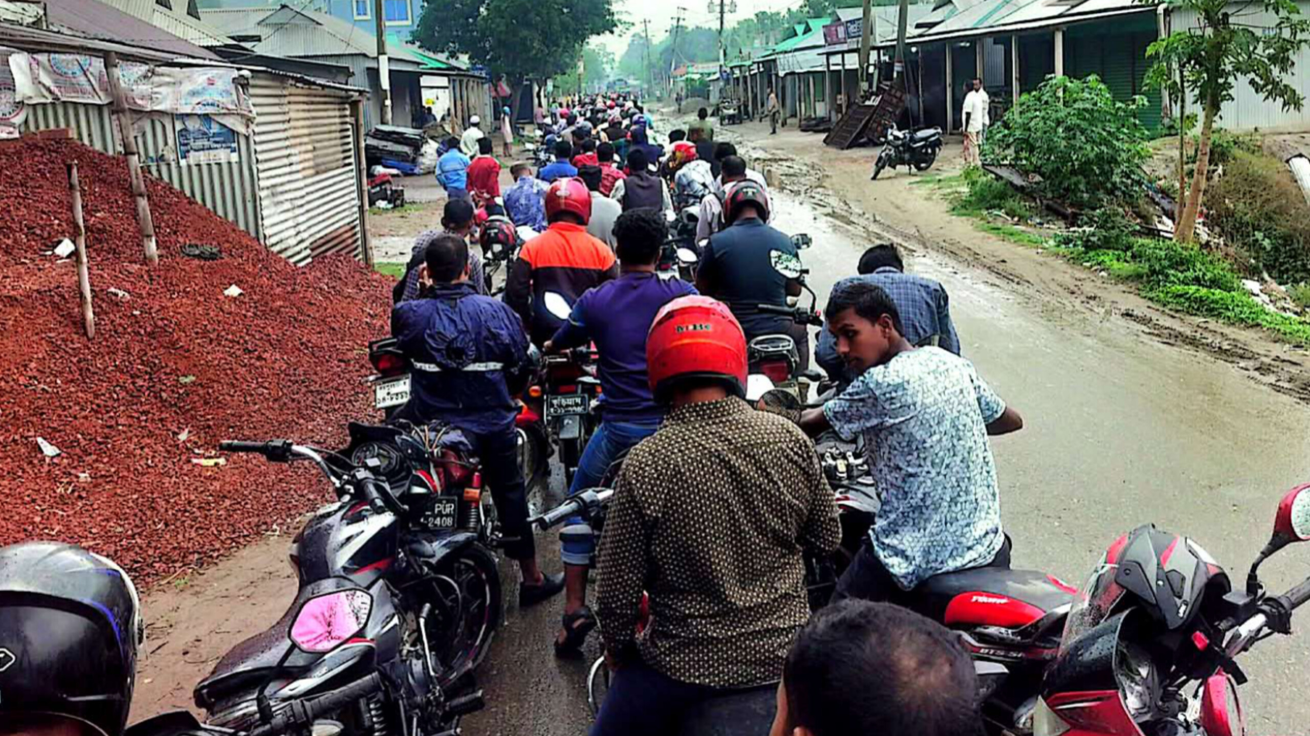 রৌমারীর ব্রহ্মপুত্র ফিলিং স্টেশনে সরেজমিনে দেখা যায়, ভোররাত তিনটা থেকেই মোটরসাইকেলের দীর্ঘ লাইন শুরু হয়, যা সকাল গড়াতে কয়েক কিলোমিটার পর্যন্ত বিস্তৃত হচ্ছে। ঘণ্টার পর ঘণ্টা অপেক্ষার পরও অনেকেই সময়মতো তেল পাচ্ছেন না।