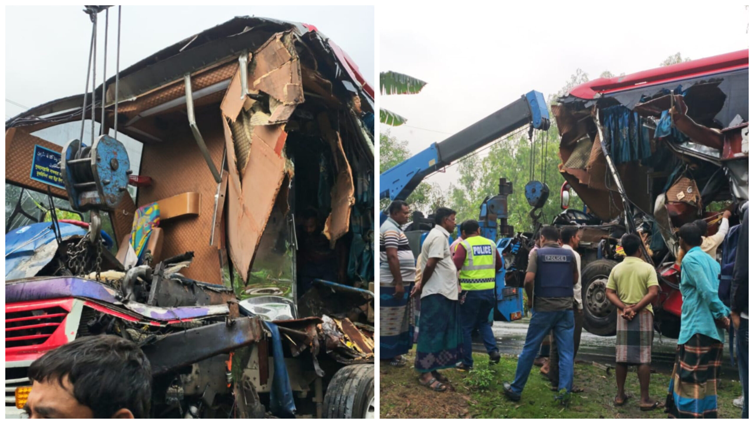 নিহতদের মধ্যে একজন হলেন বাসযাত্রী মোশারফ হোসেন বাবু, তিনি মুন্সিগঞ্জের শ্রীনগর উপজেলার বাসিন্দা। অপর নিহত ব্যক্তির পরিচয় তাৎক্ষণিকভাবে জানা যায়নি।