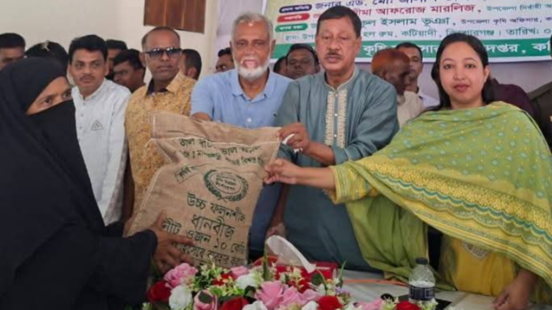 অনুষ্ঠানে উপজেলার সাধারণ কৃষক ও কৃষাণীদের মাঝে জনপ্রতি ৫ কেজি করে উফসী আউশ ধানের বীজ (ব্রি ধান-৪৮ ও ব্রি ধান-৯৮) এবং ১০ কেজি ডিএপি ও ১০ কেজি এমওপি সার বিতরণ করা হয়।