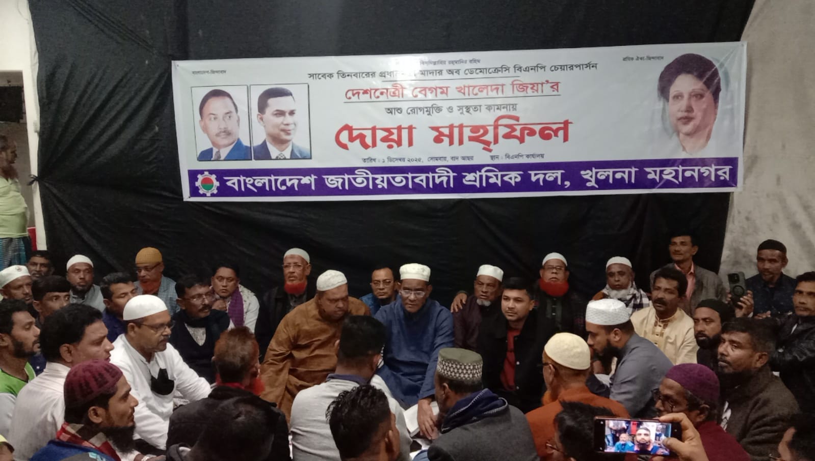 চেয়ারপার্সন ও সাবেক প্রধানমন্ত্রী বেগম খালেদা জিয়ার দ্রুত সুস্থতা কামনায় খুলনা মহানগর শ্রমিক দলের উদ্যোগে দোয়া মাহফিল অনুষ্ঠিত হয়েছে। সোমবার বিকাল ৫টায় নগরীর কেডি ঘোষ রোডস্থ বিএনপি কার্যালয়ে এই দোয়া আয়োজন করা হয়।