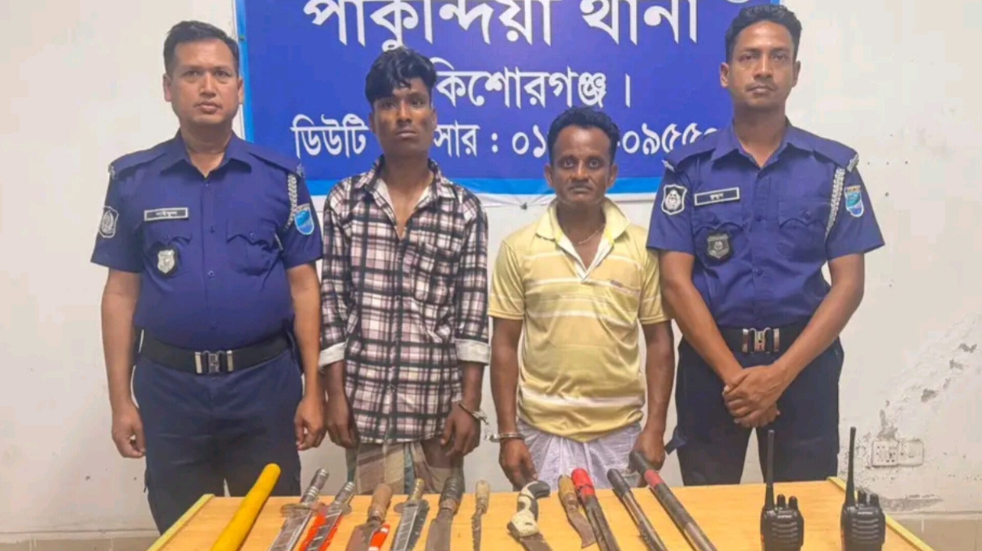 গত ৫ এপ্রিল ২০২৬ তারিখে পাকুন্দিয়া থানাধীন আশুতিয়া এলাকায় এসআই মধুসূদন সরকারের নেতৃত্বে একদল পুলিশ বিশেষ অভিযান চালায়। এসময় আসামিদের কাছ থেকে একটি কুড়াল, দুটি ছুরি, তিনটি স্টিলের লাঠির করাত, দুটি স্টিলের তলোয়ার, একটি করাত, দুটি ওয়াকিটকি এবং ১৮ পিস ইয়াবা ট্যাবলেট উদ্ধার করা হয়।