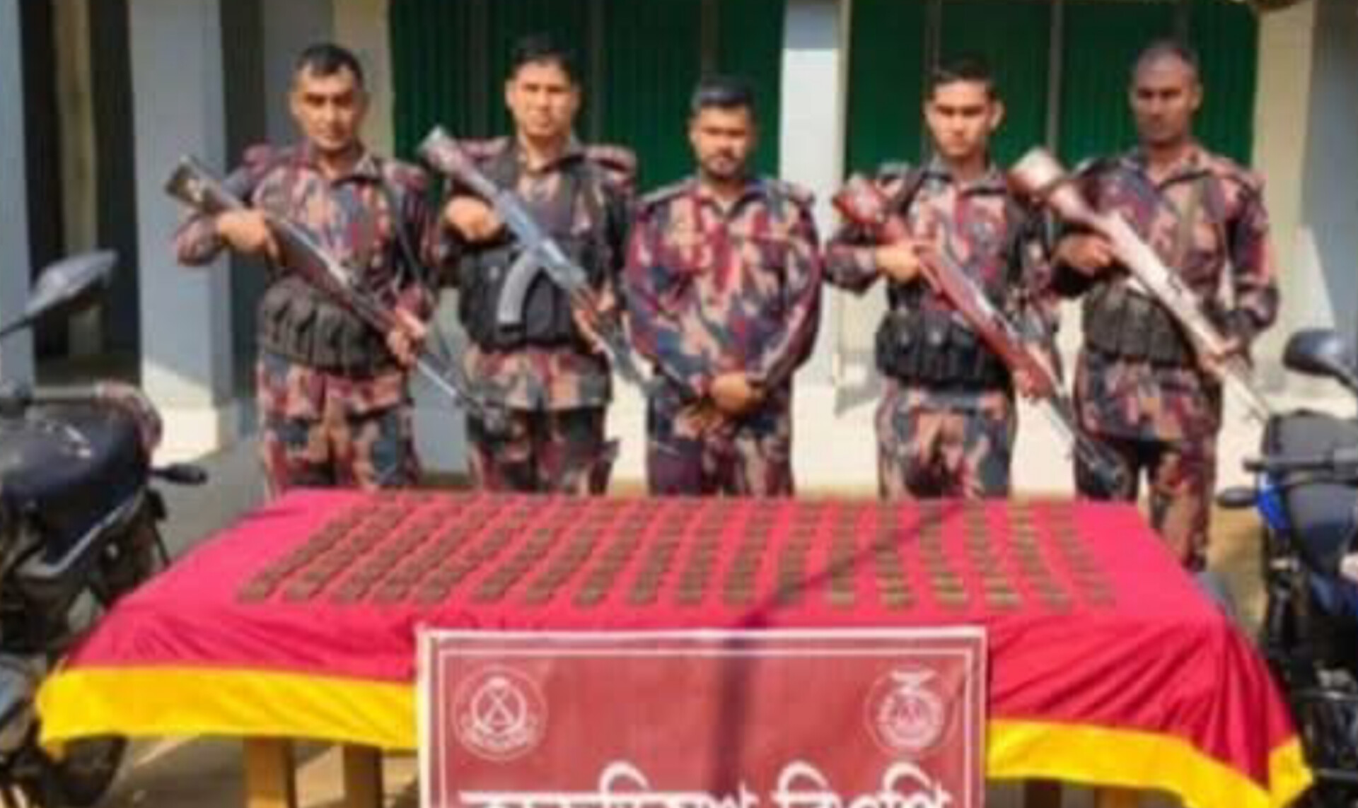 বিজিবি সূত্র জানায়, শুক্রবার দিবাগত রাত আনুমানিক ৮টার দিকে গোপন সংবাদের ভিত্তিতে বৌদ্ধমনিপাড়া বিওপির কমান্ডার নায়েব সুবেদার মোঃ শাহ আলমের নেতৃত্বে একটি টহল দল অভিযান পরিচালনা করে। এ সময় সীমান্ত এলাকার একটি স্থানে পরিত্যক্ত অবস্থায় দুটি মোটরসাইকেল এবং এসএমজি’র ১৪০০ রাউন্ড গোলাবারুদ উদ্ধার করা হয়।