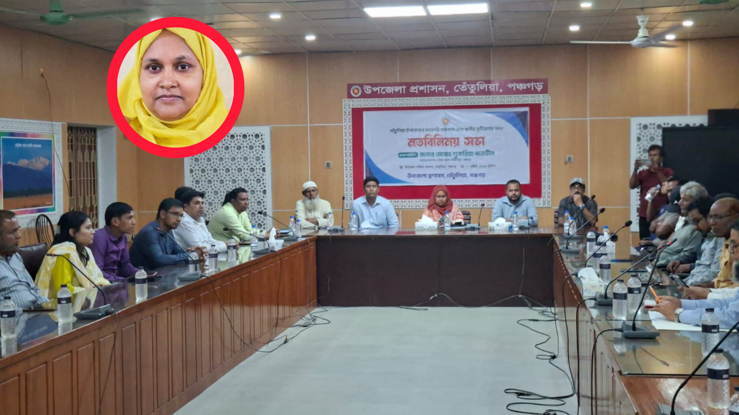 বৃহস্পতিবার (১৬ এপ্রিল) বিকেলে তেঁতুলিয়া উপজেলা পরিষদ হলরুমে আয়োজিত এক মতবিনিময় সভায় এ ঘটনা ঘটে। সভায় নবাগত জেলা প্রশাসক ও জেলা ম্যাজিস্ট্রেট শুকরিয়া পারভীন স্থানীয় সরকারি কর্মকর্তা ও সুধীজনদের সঙ্গে মতবিনিময়ে অংশ নেন।