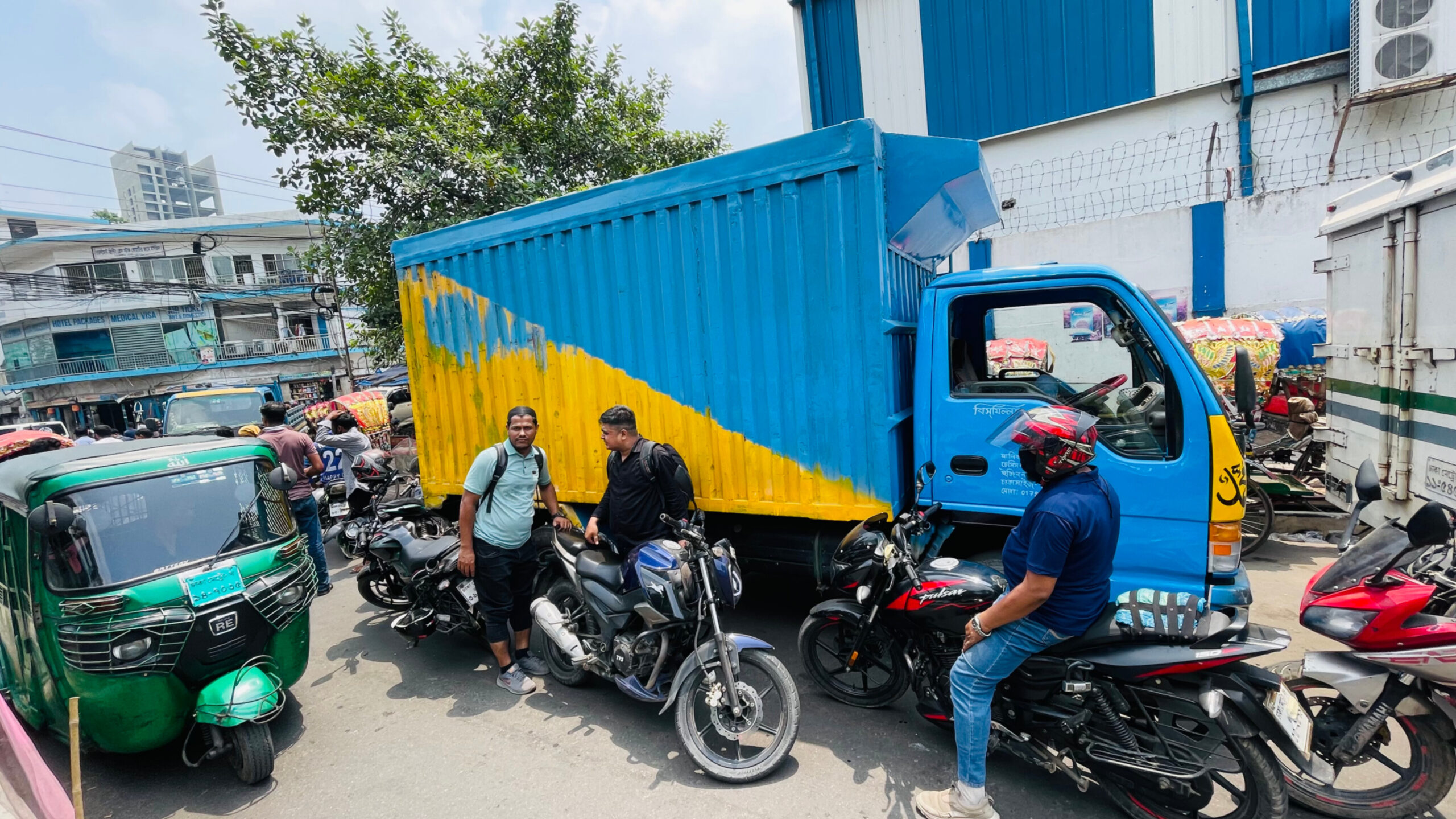 সরেজমিনে দেখা যায়, পণ্যবাহী ট্রাকগুলো নির্ধারিত স্থানে না রেখে সড়কের মাঝামাঝি অংশেই পার্কিং করা হচ্ছে। পাশাপাশি নিকটবর্তী জ্বালানি স্টেশনে তেল নেওয়ার জন্য মোটরসাইকেলের দীর্ঘ সারি সড়কের একটি বড় অংশ দখল করে রাখছে। ফলে সড়ক সংকুচিত হয়ে পড়ায় অন্যান্য যানবাহনের চলাচল মারাত্মকভাবে ব্যাহত হচ্ছে।