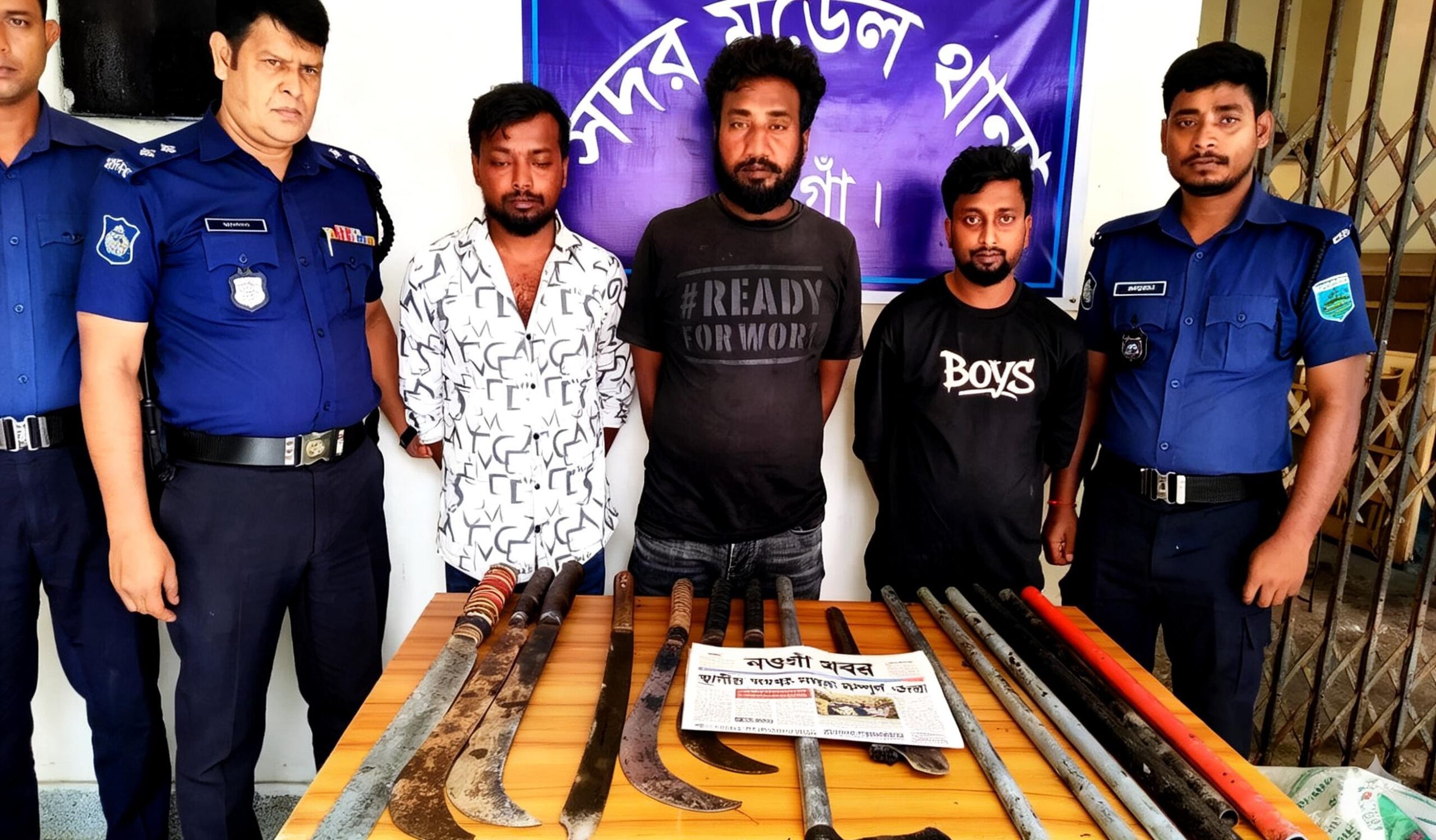 সন্ত্রাসবিরোধী অভিযানে নওগাঁ জেলা পুলিশ বিপুল দেশীয় অস্ত্রসহ তিন সন্ত্রাসী গ্রেপ্তার