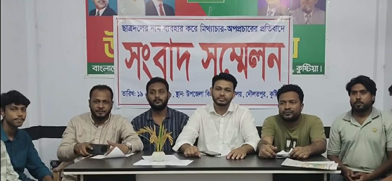 রোববার (১৯ এপ্রিল) সন্ধ্যা সাড়ে ৬টায় দৌলতপুর উপজেলা বিএনপির কার্যালয়ে আয়োজিত এক সংবাদ সম্মেলনে এ প্রতিবাদ জানানো হয়। এতে লিখিত বক্তব্য উপস্থাপন করেন উপজেলা ছাত্রদলের আহ্বায়ক মাসুদুজ্জামান রুবেল।