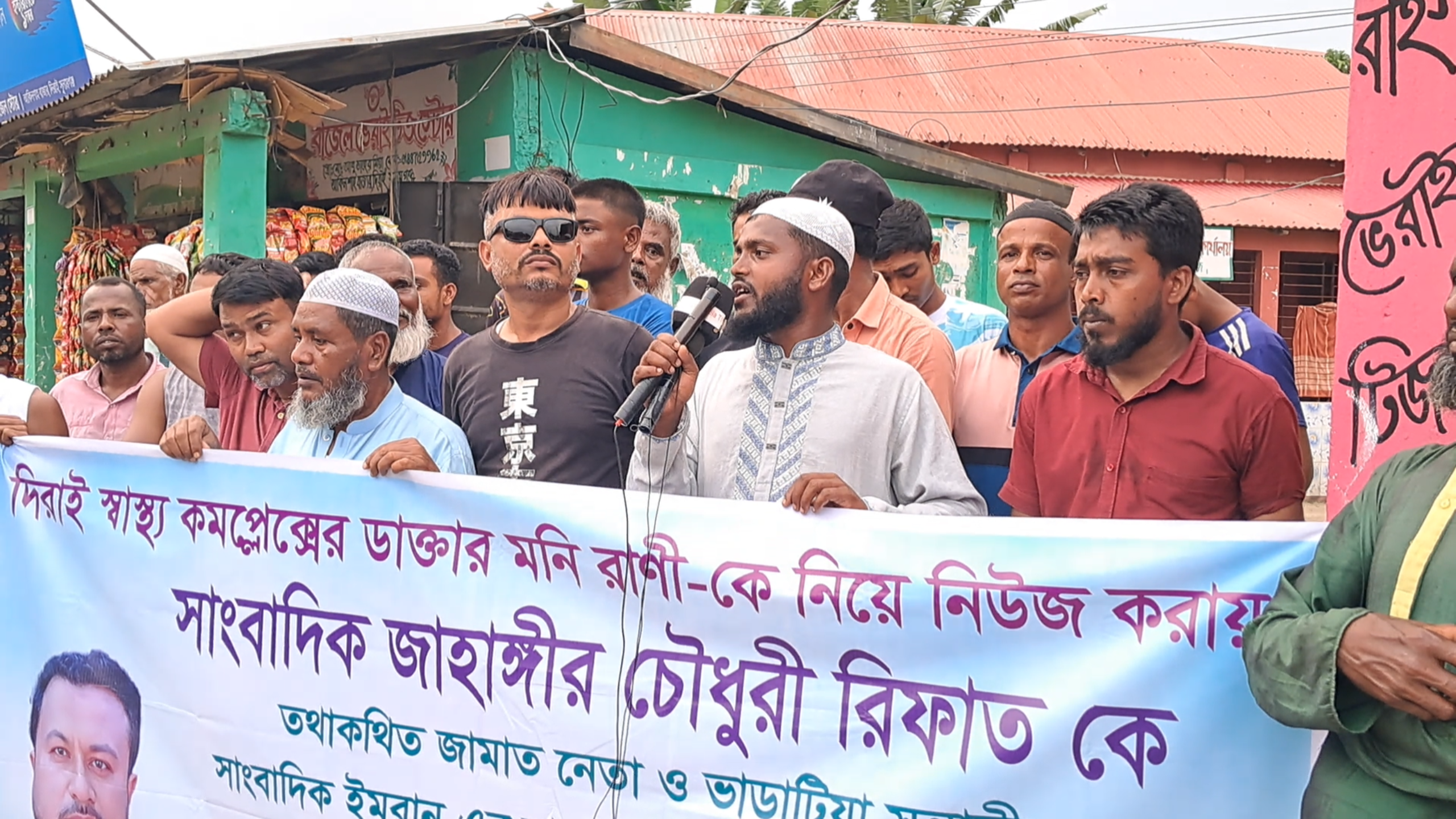 সমাবেশে বক্তব্য রাখেন স্থানীয় ব্যবসায়ী একরাম হোসেন, জমিয়ত নেতা মাহদী হাসান, সালিশ ব্যক্তিত্ব আব্দুল মহিম, ছাত্রনেতা জিসানসহ বিভিন্ন শ্রেণি-পেশার মানুষ।