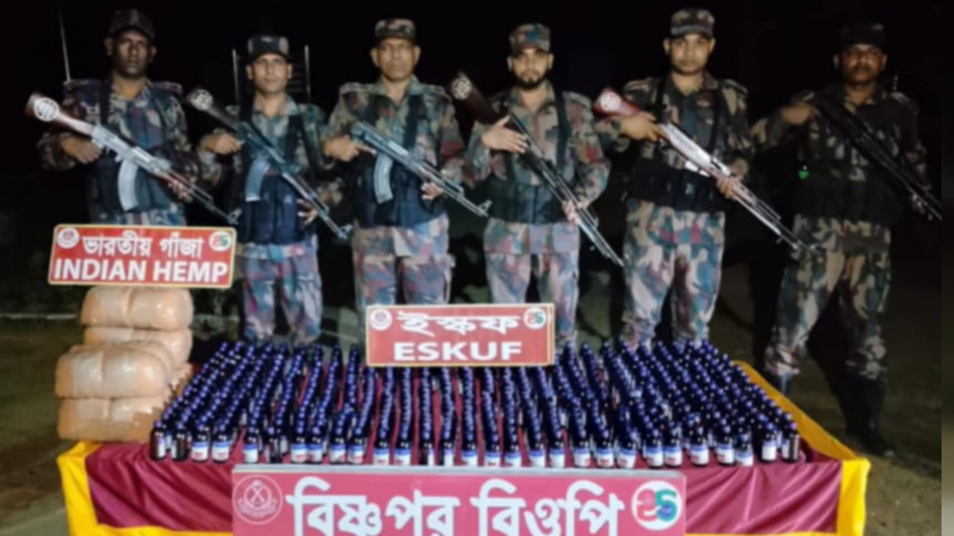 জব্দকৃত মাদকের মধ্যে রয়েছে ভারতীয় উৎপাদিত ৪৯৭ বোতল ইস্কফ (Eskuf) এবং প্রায় ১০ কেজি গাঁজা।