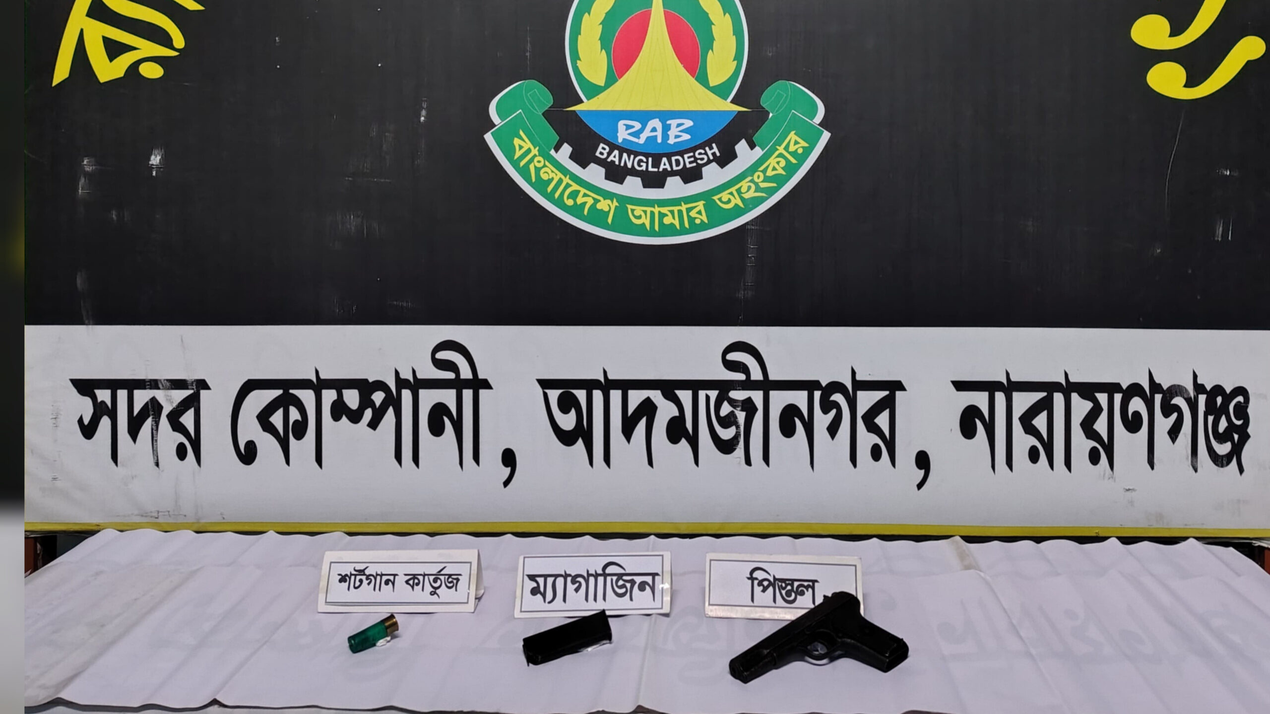 নারায়ণগঞ্জের সিদ্ধিরগঞ্জে থানা থেকে লুট হওয়া একটি বিদেশি পিস্তল ও শর্টগানের গুলি উদ্ধার করেছে র্যাব-১১।