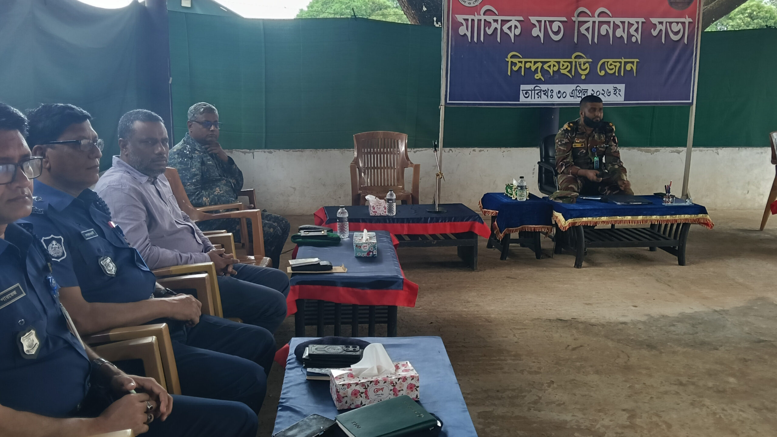 সভায় প্রধান অতিথি হিসেবে উপস্থিত ছিলেন সিন্দুকছড়ি জোনের উপ-অধিনায়ক মেজর মোহাম্মদ মাজহার হোসেন রাব্বানী। সভায় পাহাড়ি এলাকার শান্তি, শৃঙ্খলা ও সার্বিক নিরাপত্তা পরিস্থিতি নিয়ে বিস্তারিত আলোচনা করা হয়।