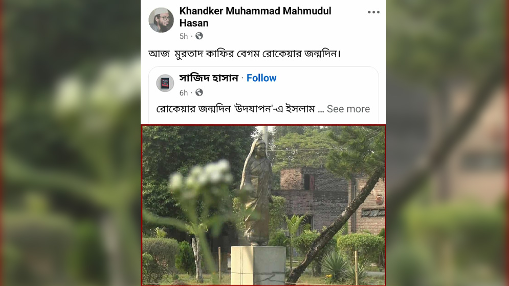 নারী আন্দোলনের অগ্রদূত বেগম রোকেয়াকে 'মুরতাদ' ও 'কাফের' হিসেবে আখ্যা দিয়েছেন রাজশাহী বিশ্ববিদ্যালয়ের (রাবি) পদার্থবিজ্ঞান বিভাগের সহযোগী অধ্যাপক খন্দকার মুহাম্মদ মাহমুদুল হাসান।