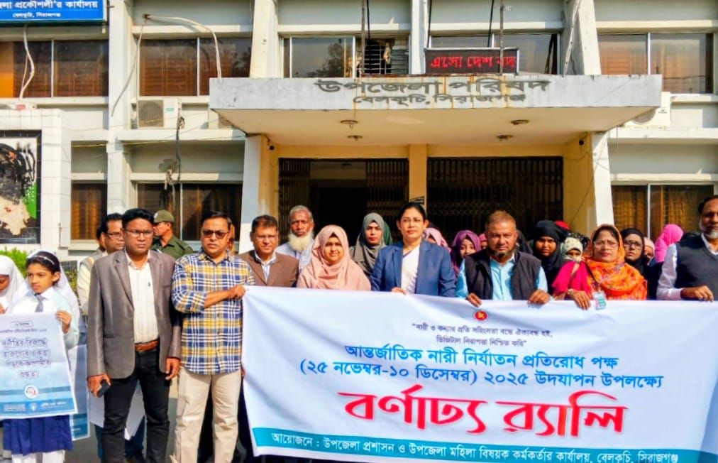 সিরাজগঞ্জের বেলকুচিতে আন্তর্জাতিক নারী নির্যাতন প্রতিরোধ পক্ষ ও "রোকেয়া দিবস " উপলক্ষে জাতীয় সংগীত পরিবেশনের মাধ্যমে জাতীয় পতাকা উত্তলন করা হয়, সেই সাথে একটি বর্নাঢ্য র্যালি বের হয়ে উপজেলার প্রধান প্রধান সড়ক প্রদক্ষিণ করে আবার উপজেলায় এসে শেষ হয়, পরে বেলকুচি উপজেলা সম্মেলন কক্ষে সংক্ষিপ্ত আলোচনা সভা অনুষ্ঠিত হয়।