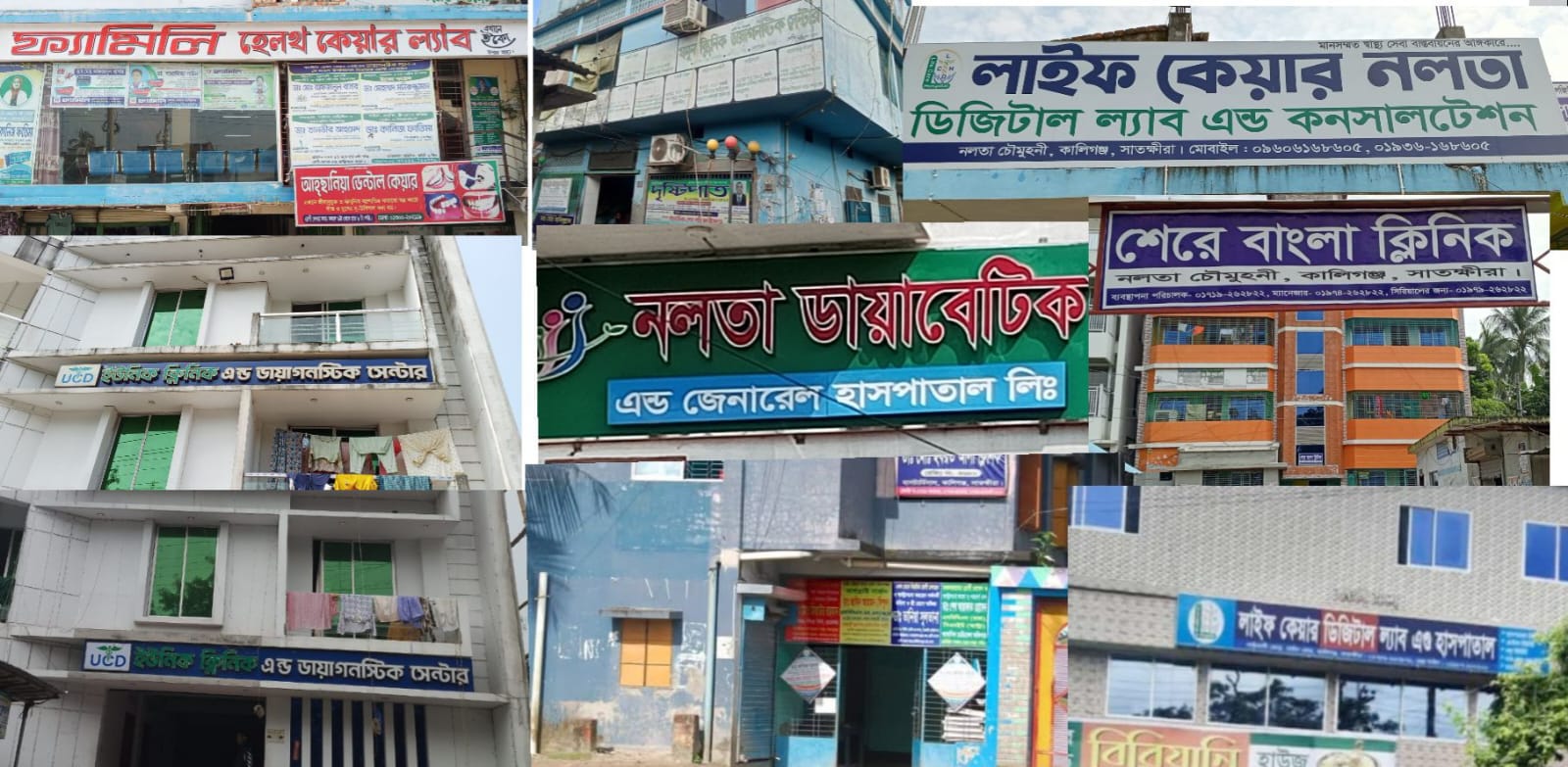 ৪৬/২৪ ইং তারিখে শেষ হলেও এখনো কোনো অনুমোদন নাই। কালিগঞ্জ সার্জিক্যাল ক্লিনিক এন্ড ডায়াগনস্টিক সেন্টারের অনুমোদনের মেয়াদ গত ৩০/৬ /২০১৯ ইং তারিখে শেষ হলেও এখনো কোনো অনুমোদন মেলেননি। যমুনা ক্লিনিক এন্ড ডায়াগনস্টিক সেন্টারের অনুমোদনের মেয়াদ গত ৩০/৬/২০১৮ ইং তারিখে শেষ হলেও আজও পর্যন্ত তার কোন অনুমোদন নাই । তবে ক্লিনিক মালিক শরিফুল ইসলাম নিজেকে একজন সাংবাদিক দাবি করে বহাল তবিয়াদে পরিচালনা করে আসছেন। কিছুদিন আগে এই ক্লিনিকে অভিযান চালিয়ে ৫ হাজার টাকা জরিমানা আদায় করে ভ্রাম্যমাণ আদালত। ঝরনা ক্লিনিক এন্ড ডায়াগনস্টিক সেন্টারের অনুমোদনের মেয়াদ গত ৩০/৬/২০১৯ ইং তারিখে শেষ হইলেও আজও পর্যন্ত অনুমোদন অনুমোদন মেলেনি। তবে ক্লিনিক মালিক মিলন নিজে কোন ডাক্তার না হয়েও হর হামেশা সিজার এপেন্ডিসাইডের মতন অপারেশন করে থাকলেও দেখার কেউ নাই। কালীগঞ্জের পাও খালিতে অবস্থিত রিডা হাসপাতাল এন্ড ডায়াগনস্টিক সেন্টারের অনুমোদন মেয়াদ গত ৩০/৬/২০২৪ ইং শেষ হলেও এখনো কোনো অনুমোদন নাই । সাতক্ষীরা সদর হাসপাতালের রেডিও টেকনোলজিস্ট জাহাঙ্গীর আলমের মালিকাধীন তার ভাই গোলাম মোস্তফার নামে গত ৩০/৬/২১ তারিখে অনুমোদনের মেয়াদ শেষ হলেও আজও কোন নতুন করে অনুমোদন মেলেননি। সেখানে ডাক্তার মনিরুজ্জামান নামে একজন রোগী দেখার কথা বললেও অধিকাংশ সময় তাকে পাওয়া যায় না । কয়েক মাস আগে রোগীর রক্ত পরীক্ষায় ভুল রিপোর্টের কারণে উপজেলা নির্বাহী কর্মকর্তা ভ্রাম্যমান আদালত বসিয়ে ২০ হাজার টাকা জরিমানা আদায় করে। কালিগঞ্জ ফায়ার সার্ভিস স্টেশনের পাশে আমতলা মোড়ে এ আলী ক্লিনিকের গত ৩০/৬ ২০১৭ ইং তারিখে আবেদন করা থাকলেও কোন অনুমোদন নাই। কৃষ্ণনগরে বন্ধন হাসপাতাল এন্ড ডিজিটাল ল্যাবের অনুমোদন গত ৩০/৬/২৫ শেষ হলেও আর কোন অনুমোদন মেলেনি। কালীগঞ্জের হরমোন ক্লিনিকে কোন অনুমোদন নাই বা আবেদনও করা হয়নি। ক্লিনিগুলোতে সপ্তাহের ছুটির দিনে বাইরে থেকে বিশেষজ্ঞ ডাক্তার এনে একাধিক চেম্বার খুলে রোগীদের কাছ থেকে হাতিয়ে নেওয়া হয় মোটা অংকের গলাকাটা ফিশ। অযথা টেস্টের নামে চলে কমিশন বাণিজ্য। কালিগঞ্জের নাজিমগঞ্জ বাজারে সাংবাদিক কাম যমুনা ক্লিনিকের মালিক শরিফুল ইসলাম কালিগঞ্জ স্বাস্থ্য কমপ্লেক্সের প্রাক্তন স্বাস্থ্য ও পরিবার পরিকল্পনা কর্মকর্তা ডাঃ হাবিবুল্লাহ সাহেবকে খন্ডকালীন সময়ে বসালেও এখানে কোন নিয়ম মাফিক ডাক্তার বা নার্স না থাকায় অদৃশ্য শক্তির জোরে সমস্ত পরীক্ষা-নিরীক্ষা করে বছরের পর বছর চালিয়ে আসছে। শ্যামনগর -কালিগঞ্জ মহাসড়কের পাশে রোকেয়া মুনসুর ডিগ্রী কলেজ সংলগ্ন মনিরুল ইসলাম মিলনের ঝরনা ক্লিনিক এন্ড ডায়াগনস্টিক সেন্টারে কোন ডাক্তার বা নার্স না থাকলেও মাসোহারা দিয়