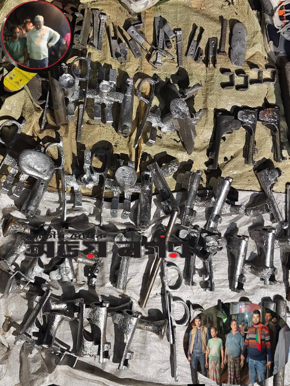 কারখানা থেকে অস্ত্র তৈরির সাচ, সীসা, ট্রিগার, ট্রিগার গার্ডসহ ৩০/৩৫ টি অস্ত্রের সরঞ্জাম উদ্ধার করা হয়েছে। শহরের মধ্যবর্তী স্থানে এমন একটি অস্ত্রের কারখানা হওয়ায় স্থানীয়রা উদ্বেগ প্রকাশ করেছে। এ ঘটনায় ৩ জনকে আটক করা হয়েছে।