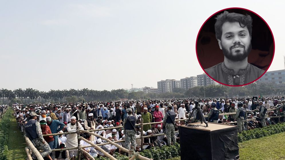 ইনকিলাব মঞ্চের মুখপাত্র ও জুলাই বিপ্লবী শহিদ ওসমান হাদির জানাজার নামাজে অংশ নিতে জাতীয় সংসদ সংলগ্ন মানিক মিয়া অ্যাভিনিউতে জড়ো হচ্ছেন নানা শ্রেণি-পেশার মানুষ। একের পর এক মিছিল নিয়ে জানাজার স্থানে প্রবেশ করছেন ছাত্র-জনতা। কানায় কানায় পূর্ণ হয়ে গেছে জনসমাগমে।
