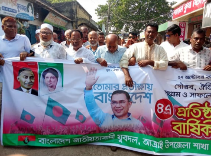 নওগাঁর আত্রাইয়ে বাংলাদেশ জাতীয়তাবাদী যুব দলের গৌরব, ঐতিহ্য, সংগ্রাম ও সাফল্যের ৪৭তম প্রতিষ্ঠা বার্ষিকী পালন করা হয়েছে। মঙ্গলবার (২৮ অক্টোবর) দুপুরে উপজেলা যুবদলের আয়োজনে বর্ণাঢ্য র্যালি ও আলোচনা সভা অনুষ্ঠিত হয়। অনুষ্ঠানে যুব দলের সিনিয়র আহ্বায়ক খোরশেদ আলম সভাপতিত্ব করেন এবং যুগ্ম আহ্বায়ক আশরাফুল ইসলাম লিটন অনুষ্ঠান সঞ্চালনা করেন।