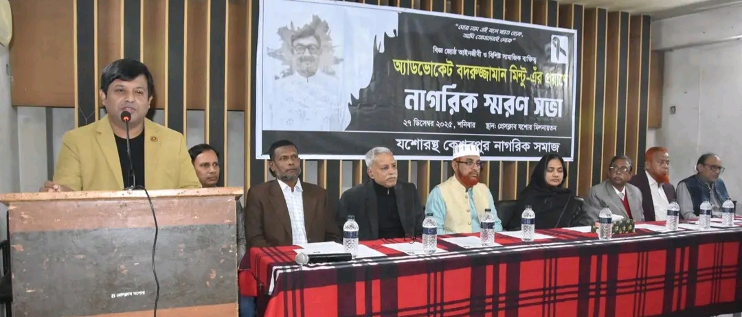 যশোর প্রেসক্লাব মিলনায়তনে যশোর জেলার কেশবপুর উপজেলার কৃতি সন্তান, বিজ্ঞ আইনজীবী, পরিচ্ছন্ন রাজনীতিক ও বিশিষ্ট সামাজিক ব্যক্তিত্ব অ্যাডভোকেট বদরুজ্জামান মিন্টুর প্রয়াণে শনিবার সকালে এক নাগরিক স্মরণসভা অনুষ্ঠিত হয়েছে। যশোরস্থ কেশবপুর নাগরিক সমাজের উদ্যোগে আয়োজিত এ স্মরণসভায় তাঁর কীর্তিময় জীবন, আইন পেশায় অসামান্য অবদান এবং সামাজিক কর্মকাণ্ডকে গভীর শ্রদ্ধার সাথে স্মরণ করা হয়।