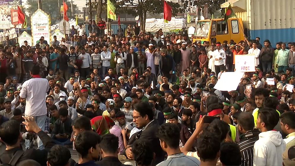 খুলনা নগরীর শিববাড়ি মোড়ে বিক্ষোভ ও অবস্থান কর্মসূচি পালিত হয়েছে। বিক্ষুব্ধরা অভিযোগ করেন, হাদির হত্যাকারীরা প্রশাসনের সহযোগিতা না পেলে দেশ ছেড়ে পালানো সম্ভব নয়। হত্যাকারীদের দ্রুত আইনের আওতায় এনে সর্বোচ্চ সাজা নিশ্চিতের দাবি জানান তারা।