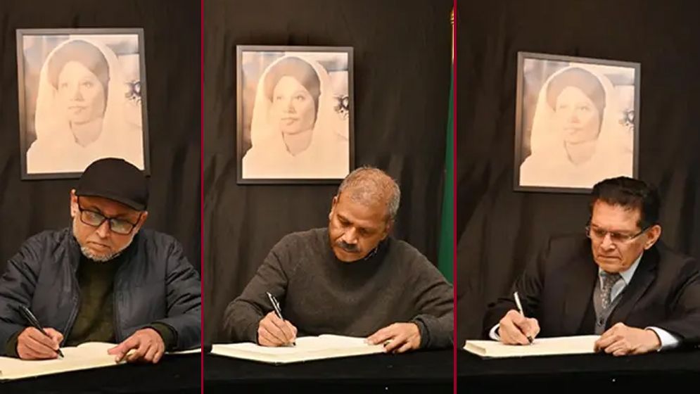 সাবেক প্রধানমন্ত্রী ও বিএনপির চেয়ারপারসন বেগম খালেদা জিয়ার মৃত্যুতে শোক প্রকাশ করে শোক বইয়ে স্বাক্ষর করেছেন আইন উপদেষ্টা ড. আসিফ নজরুল, সংস্কৃতি উপদেষ্টা মোস্তফা সারয়ার ফারুকী ও জাতীয় নিরাপত্তা উপদেষ্টা ড. খলিলুর রহমান।