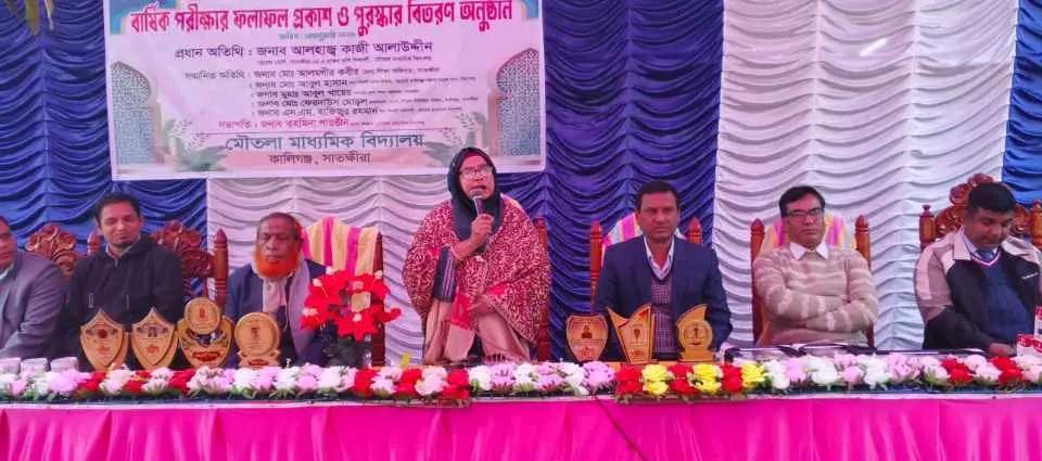 সাতক্ষীরার কালিগঞ্জের মৌতলা মাধ্যমিক বিদ্যালয়ের বার্ষিক পরীক্ষার ফলাফল প্রকাশ ও পুরস্কার বিতরণ অনুষ্ঠান অনুষ্ঠিত হয়েছে। বৃহস্পতিবার (১ লা জানুয়ারী) বেলা ১২ টায় বিদ্যালয় প্রাঙ্গণে এ অনুষ্ঠান অনুষ্ঠিত হয়। বিদ্যালয়ের প্রধান শিক্ষিকা তাহমিনা পারভীনের সভাপতিত্বে ও সহকারী শিক্ষক মো,আনোয়ারুল ইসলামের সঞ্চালনায় প্রধান অতিথি হিসেবে উপস্থিত ছিলেন সাতক্ষীরা জেলা শিক্ষা অফিসার মো,আলমগীর হোসেন। সম্মানিত অতিথি হিসেবে উপস্থিত ছিলেন কালিগঞ্জ সরকারি পাইলট মাধ্যমিক বিদ্যালয়ের সদ্য বিদায়ী প্রধান শিক্ষক আবুল হাসান,সহকারি জেলা শিক্ষা অফিসার আবুল খায়ের, মৌতলা ইউ,পি চেয়ারম্যান ফেরদাউস মোড়ল, সাবেক সভাপতি এস, এম হাফিজুর রহমান, মৌতলা ইউনিয়ন যুবদলের আহবায়ক কাজী আবু সাঈদ। এছাড়া অন্যান্যদের মধ্যে উপস্থিত ছিলেন বিদ্যালয়ের সহকারী প্রধান শিক্ষক সঞ্জীব কুমার দে, সহকারী শিক্ষক আনারুল ইসলাম, ইকরামুল , সেলিম রেজা, বাবলু কুমার সেন,