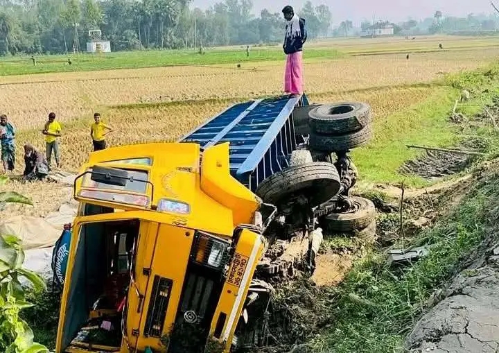 নওগাঁর মহাদেবপুর উপজেলার তেরো মাইল মোড় এলাকায় আজ এক সড়ক দুর্ঘটনা ঘটেছে। প্রত্যক্ষদর্শী সূত্রে জানা যায়, দ্রুতগামী একটি ট্রাকের সামনের টায়ার হঠাৎ ফেটে গেলে চালক নিয়ন্ত্রণ হারান। মুহূর্তের মধ্যেই ট্রাকটি রাস্তার পাশের গভীর খাদে উল্টে পড়ে যায়।