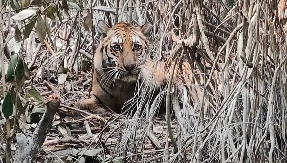 সুন্দরবনে হরিন শিকারের ফাঁ*দে আ*টকে পড়া বাঘ উ*দ্ধার