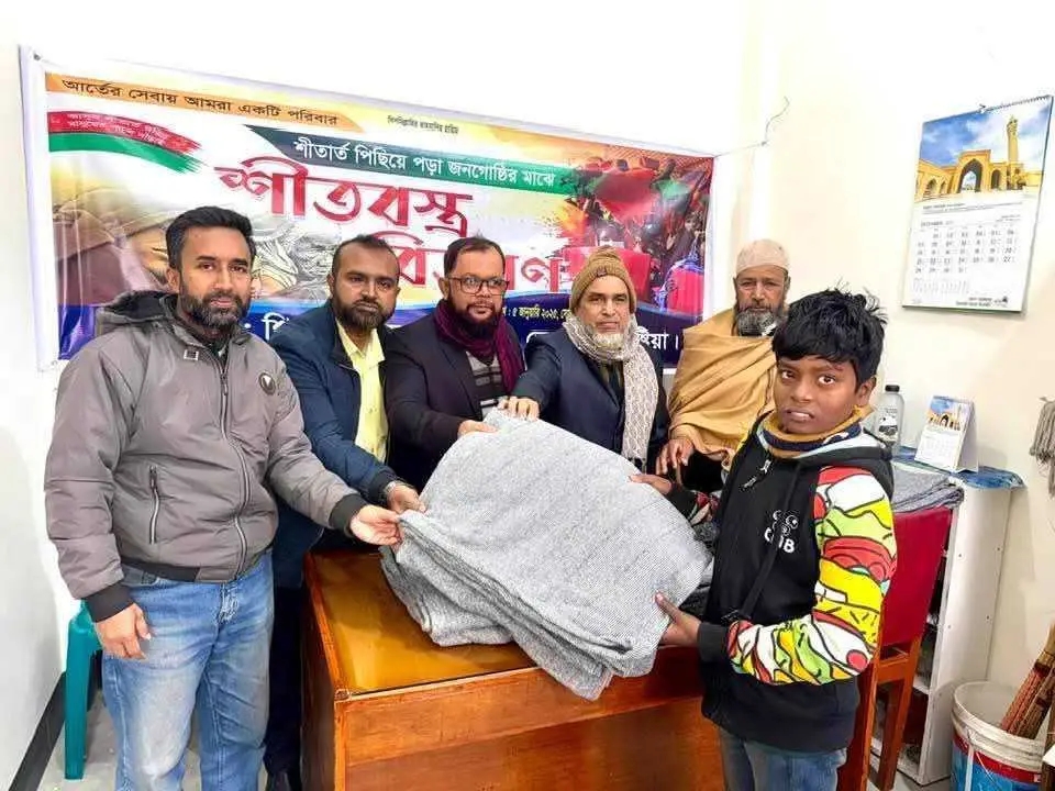 শীতে যবুথবু হয়ে কাঁপছে অসহায় শীতার্ত মানুষেরা। হাঁড় কাঁপানো শীতে জীবন যেন উষ্টাগত। এই সব শীতার্ত অসহায় পরিবারের মাঝে কম্বল বিতরন করে পাশে দাঁড়িয়েছে কুষ্টিয়ার ভেড়ামারার সামাজিক ও মানবিক সংগঠন শিশু তাহমিদ ফাউন্ডেশন। আজ ০৫/০১/২৬ ইং সোমবার দুপুর ১২টায় পশু হাসপাতাল সংলগ্ন রেহেনা এন্টারপ্রাইজ অফিসে এই অনুষ্ঠানের আয়োজন করা হয়। ফাউন্ডেশনের চেয়ারম্যান ও ভেড়ামারা ল্যাব এইড ডায়গনষ্টিক সেন্টার এন্ড ডক্টরস পয়েন্টে’র ব্যবস্থাপনা পরিচালক সাংবাদিক শাহ্ জামাল’র সার্বিক তত্বাবধায়নে অনুষ্টিত কম্বল বিতরন অনুষ্ঠানে আমন্ত্রিত অতিথি ছিলেন, ভেড়ামারা পৌর বিএনপির সাংগঠনিক সম্পাদক ও রেল বাজার বনিক সমিতির সাধারন সম্পাদক শামীম রেজা শামীম, আল আরাফাহ ইসলামী ব্যাংকের ম্যানেজার আমিনুল ইসলাম, দৈনিক যুগান্তর প্রতিনিধি রেজাউল করিম, ভেড়ামারা বিনামূল্যে চিকিৎসালয়ের উপদেষ্টা আতিয়ার রহমান মৃধা, ভেড়ামারা অনলাইন প্রেসক্লাবের সভাপতি ডাঃ কামরুল ইসলাম মনা, বাহাদুরপুর মাধ্যমিক বিদ্যালয়ের সহকারী শিক্ষক ওয়ালিউল ইসলাম ওলি, দৈনিক সমকাল প্রতিনিধি আজিজুল হাকিম, দৈনিক সংবাদ প্রতিনিধি প্রদীপ সরকার, সাপ্তাহিক কুষ্টিয়ার মুখ প্রতিনিধি শামিমুল হক শামীম, ক্বারী ওসমান প্রমুখ। অনুষ্ঠানে ৫০ টি পরিবারের মাঝে শীত নিবারনের কম্বল বিতরন করা হয়