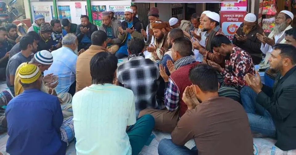 মাহফিলে দেশনেত্রী বেগম খালেদা জিয়ার রুহের মাগফিরাত কামনা করে মহান আল্লাহর দরবারে বিশেষ মোনাজাত করা হয়।