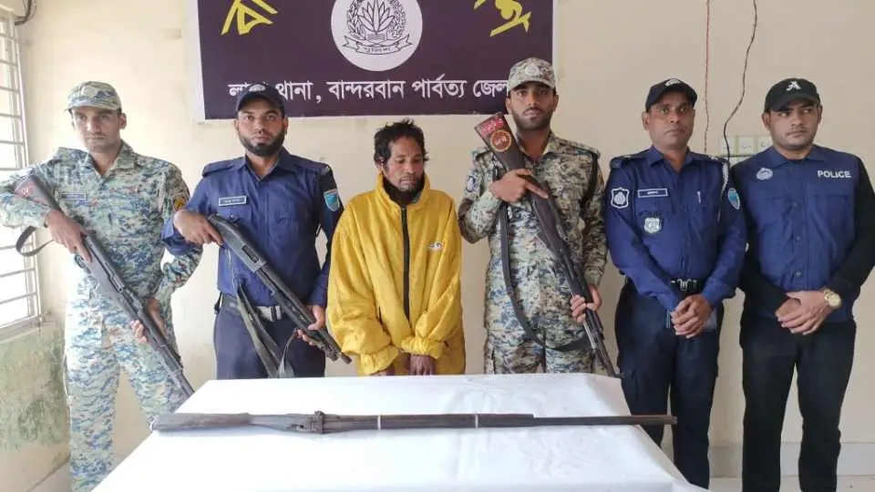 জনাব মাসুম সরদার, সহকারী পুলিশ সুপার, লামা সার্কেল মহোদয়ের তত্ত্ববধানে এবং জনাব মুহাম্মদ শাহজাহান কামাল, অফিসার ইনচার্জ, লামা থানা, বান্দরবান পার্বত্য জেলার নেতৃত্বে লামা থানার এসআই/নাছির উদ্দীন, এসআই/সঞ্জয় পাল, এসআই/মোঃ সালাহ্ উদ্দিন, এসআই/মিয়েল চাকমা, এএসআই/মোঃ এমরান ভূইয়া, এএসআই/মিজানুর রহমান, এএসআই/মোঃ রায়হান উদ্দীন, এএসআই/মোহাম্মদ ইসমাইল হোসেন, সঙ্গীয় ফোর্স সহ অদ্য ১৩/০১/২০২৬ইং তারিখ রাত ০২.১০ ঘটিকার সময় লামা থানাধীন ০২নং লামা সদর ইউনিয়নের ০১নং ওয়ার্ডের শিলেরতোয়া চংবট মুরুং পাড়াস্থ আসামী কাইংপা মুরুং (৪৯) এর এককক্ষ বিশিষ্ট বসতঘরে (মাচাংঘর) অভিযান পরিচালনা করিয়া আসামী কাইংপা মুরুং (৪৯), পিতা-মৃত- রাংলাই মুরুং, মাতা-ক্রোংপা মুরুং, সাং-চংবট মুরুং পাড়া, ০১নং ওয়ার্ড, ০২নং লামা সদর ইউনিয়ন, থানা-লামা, বান্দরবান পার্বত্য জেলা’ ০১(এক)টি দেশীয় তৈরি আগ্নেয়াস্ত্র একনলা বন্দুক’সহ গ্রেফতার করা হয়। আসামী কাইংপা মুরুং (৪৯) এর বিরুদ্ধে লামা থানায় ১। আলীকদম থানার মামলা নং-৩, তারিখ-১৫/১০/২০০২ইং, জিআর নং-১৩৮/২০০২, ধারা- ১৯ক, ১৮৭৮ সালের অস্ত্র আইন; সংক্রান্তে একটি জিআর পরোয়ানা এবং ২। আলীকদম থানার মামলা নং-৪, তারিখ- ১৫/১০/২০২২ইং, জি আর নং-১৩৯/২০০২, ধারা- ৪(১) আইন-শৃঙ্খলা বিঘ্নকারী অপরাধ (দ্রুত বিচার) আইন, ২০০২ সংক্রান্তে ০৫ (পাঁচ) বছরের সশ্রম কারাদন্ড, ৫০০/- টাকা জরিমানা অনাদায়ে আরো ০৬ (ছয়) মাস সশ্রম কারাদন্ডের জিআর সাজা পরোয়ানা মূলতবী রহিয়াছে।আসামীর বিরুদ্ধে লামা থানায় অস্ত্র মামলা রুজু করা হয়েছে। গ্রেফতারকৃত আসামীকে বিধি মোতাবেক বিজ্ঞ আদালতে সোপর্দ ক