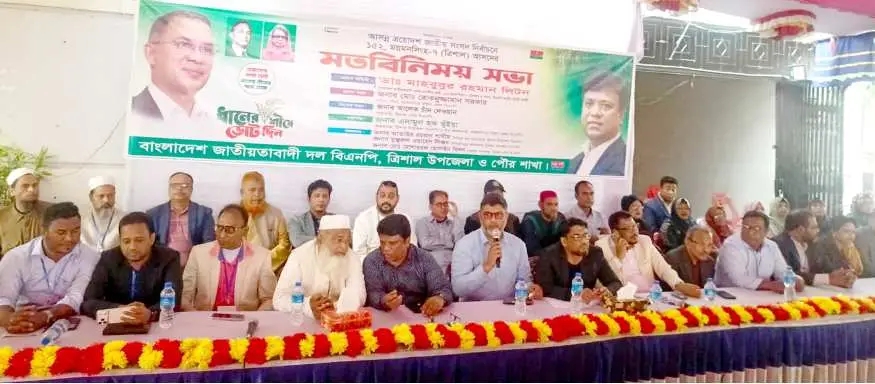 বুধবার (১৪ জানুয়ারী) দুপুরে উপজেলা বিএনপি কার্যালয়ের সামনে মতবিনিময় সভায় প্রধান অতিথির বক্তব্য রাখেন ত্রিশাল আসন থেকে বিএনপি মনোনীত প্রার্থী ডা. মাহবুবুর রহমান লিটন।